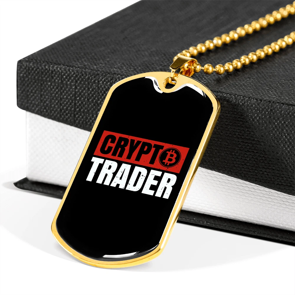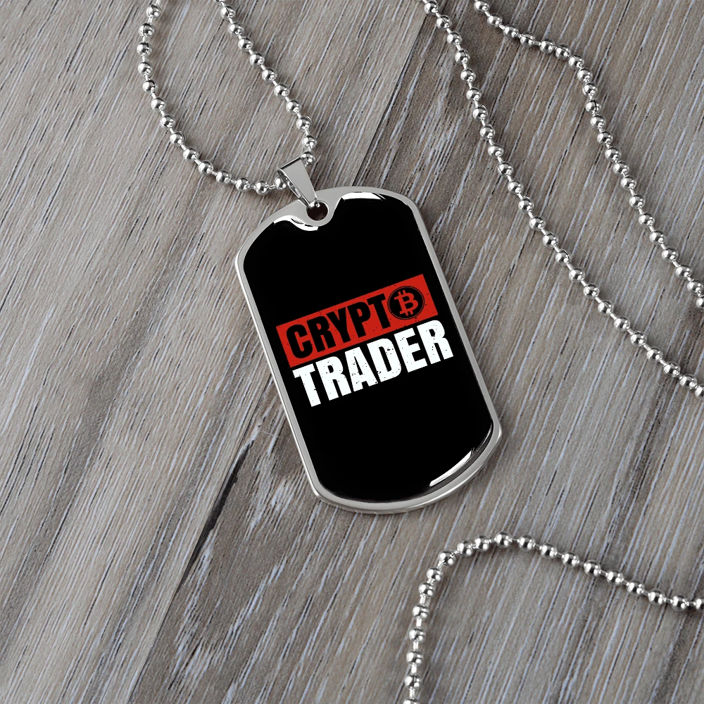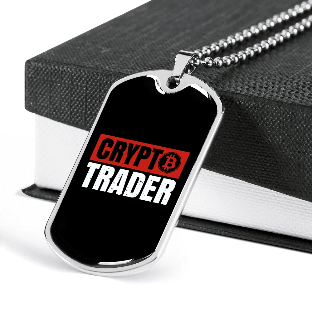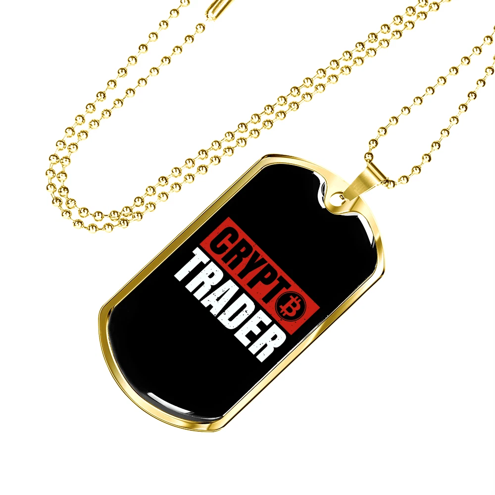 Crypto Trader Crypto Necklace Stainless Steel or 18k Gold Dog Tag 24" Chain