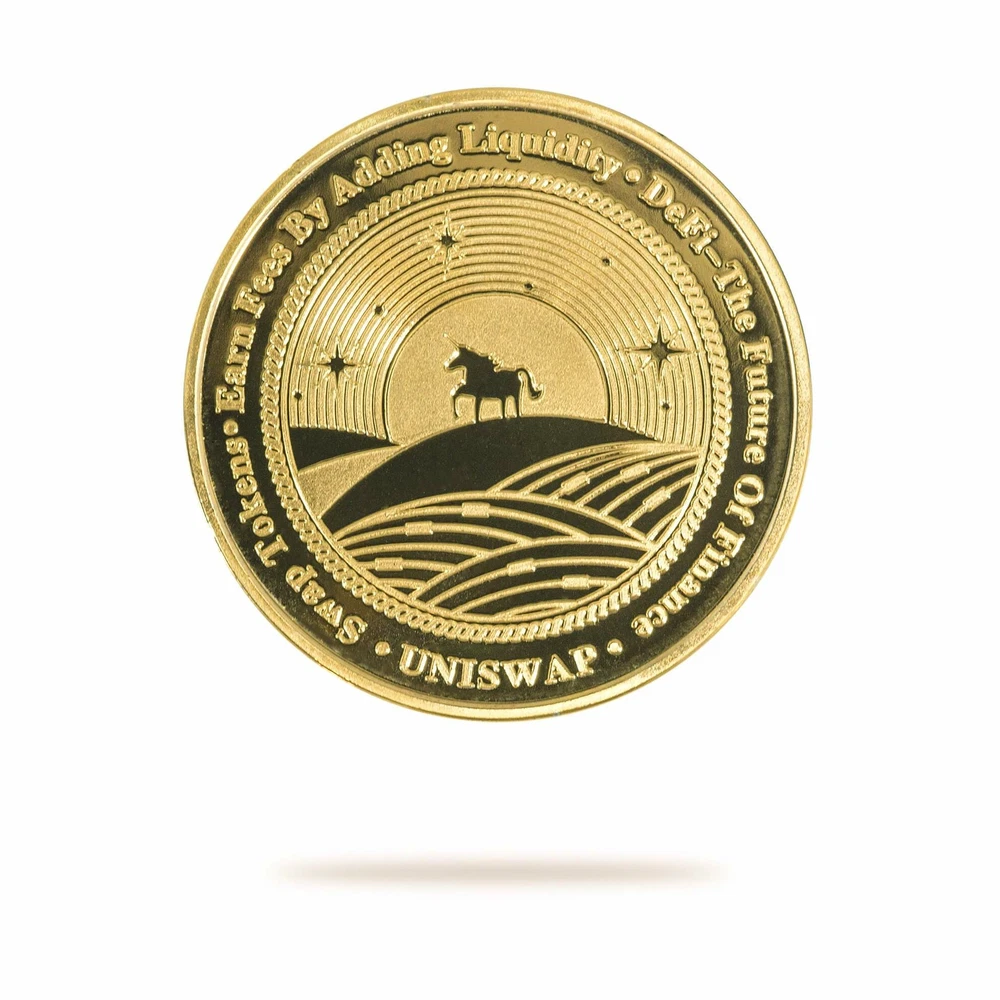 Cryptochips | Uniswap (UNI) Physical Crypto Coin | Collectable Cryptocurrency We design the highest quality physical crypto coins on the market! Each coin is constructed using a high-density iron which gives the coin its signature weight. We then finish the coin with a thin copper layer so we can apply a custom PVD treatment to give the coin a nice and shiny finish. Our unique die casting process gives Cryptochips the best custom molded cryptocurrency coins you can buy! ••• EBAY Limited Time Special••• • Receive a FREE randomly selected Cryptochip with your order • Receive the much coveted Doge Dollar and Bitcoin sticker for FREE *Please note one free coin is to be shipped with each order. (One free coin per household) ••• SHIPPING ••• Each Cryptochip will ship with our upgraded protective plastic coin case. Cryptochips are then placed in a corrugated cardboard wrap and ship in bubble wrapped mailer to ensure coins arrive in perfect condition. UNITED STATES - USPS First Class Mail • 2 - 4 Business Days • Includes Tracking INTERNATIONAL SHIPMENTS - Asendia • Canada - 5-7 Business Days • Everywhere Else - 2-5 weeks (Shipments are taking longer due to COVID) • Includes Tracking ••• RETURNS / REFUNDS ••• As a small business, we stand behind every Cryptochip we produce. If our coins fail to live up to your standards, you may return or exchange your Cryptochip (s) ••• OFFICIAL CRYPTOCHIPS SELLERS PAGE ••• This is the geniuine Cryptochips Ebay Sellers Page. Designed and operated in Seattle, WA. We are a group of crypto enthusiasts dedicated to bring you the highest quality physical crypto coins on the market.