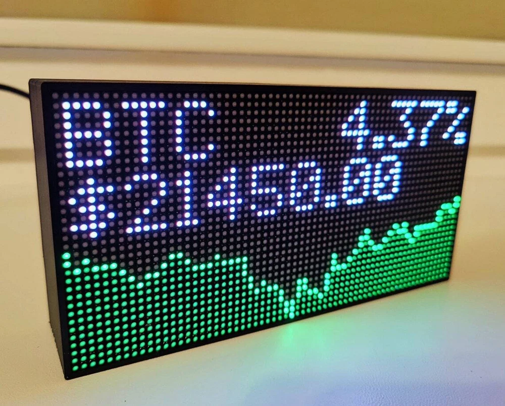 This Cryptocurrency WiFi Ticker allows you to display any cryptocurrency prices 24/7. You just need a smartphone or PC/laptop for the first-time setup, and after that, it can be plugged in anywhere via USB. It is an original gift for cryptocurrency fans and traders. Features: • 7" bright RGB LED matrix display. • Configure UP TO 5 crypto coins with smartphone or PC. • All assets are displayed 24/7. • All prices are displayed ONLY IN USD. • Adjustable screen brightness. • Updatable firmware. At first you will need to enter WIFI credentials in the configuration. Sizes: (W x H x L) (6.3" x 3.2" x 1.37") It is as easy as connecting the device to any computer the same way you connect a USB stick. Once it is setup you just need any usb power source to keep it ON at all times. What's included: 1 x 7" RGB LED Matrix Crypto ticker display 1 x Micro USB cable 1.0m (optional) 1 x User manual (digital) Have any questions about this crypto monitor? Please ask me!
