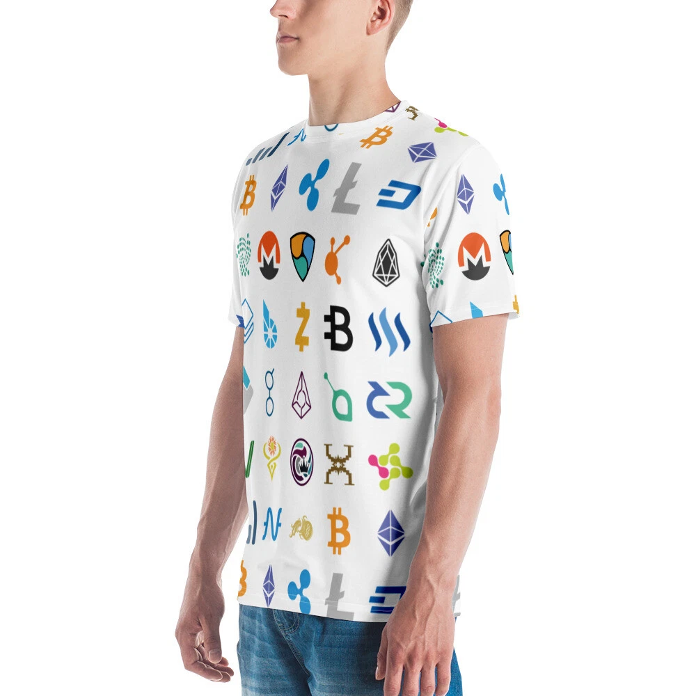 Cryptocurrency Icons All Over Print T-shirt Bitchoin ETH BTC ETH Crypto Trading Trader Gift. Brand new global free shipping. Tags: bitcoin gift bitcoin t-shirt crypto cryptocurrency blockchain xrp hodl crypto gift trading trader Ripple Litecoin Dash IOTA Monero NEM BitConnect EOS Stratis BitShares Zcash Bytecoin Steem Waves Golem Augur Siacoin Decred NevaCoin LanaCoin TajCoin Xaurum Netko coin Iconomi Suncontract AquariusCoin Get to know your new favorite tee - it's super smooth, super comfortable, and made from a cotton touch polyester jersey that won't fade after washing. • 95% polyester, 5% elastane (fabric composition may vary by 1%) • Premium knit mid-weight jersey • Four-way stretch fabric that stretches and recovers on the cross and lengthwise grains • Regular fit Size guide XS S M L XL 2XL Chest (inches) 31 ⅛ 34 ¼ 37 ⅜ 42 ⅛ 46 ⅞ 51 ⅝ XS S M L XL 2XL Chest (cm) 79 87 95 107 119 131