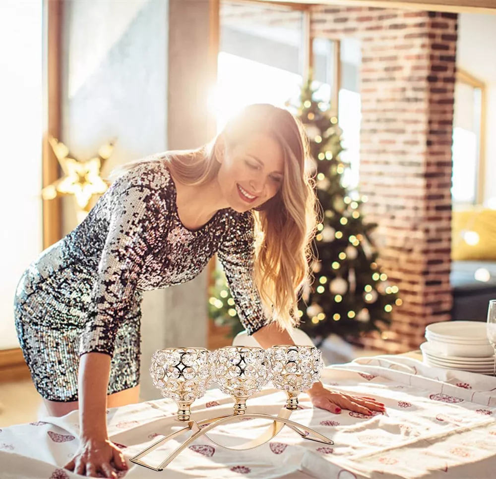 Crystal Candle Holders 3 Wick Gold Centerpiece Table Decorations for Dining Room Living Room Bling Votive Tealight Candle Holder Coffee Dining Table Centerpiece Decor Christmas Decorations Candle Holders for Table Centerpiece:Elegant and Exquisite. Only fitting for candles (tea light candle, led candles,votive candle, etc) with a diameter less than 3.8cm/1.5”.Looks very high-end sitting on table.Glittering crystal bowl creates a romantic Ambience.Crossover arch shape can ensure the holder solid and stable.Candle holder is very sturdy,well-made,shiny and elegant.Pretty addition to any area of home.Perfect choice for your home decor.Great for any season. High Quality:The crystals are nice high quality ones with lots of sparkle.Very beautifully constructed and when candles are lit up in it the light show is great when you have the lights off. Crystal candle holder have superb clarity.Good light transmission.Glistens even without light shining on it.Tea light candle holder with great ornamental and practicality is an indispensable item in life. Exquisite Craft:Crystal beads candle holder.Well made and sturdy.Candle holder's crystals are welded to the overall structure to make the octagonal crystals more neat and stable.More gorgeous, steadier and sturdier than normal 3 arm candle holders. And, there are also black flannel anti-skid floor mats on the bottom of it so it sits gently on a table without worrying about marrying your furniture. Beautiful centerpiece for any table. Wide Application:Fits best on flameless electronic candle or tea light candle.Also can be matched with flowers for tabletop decor accessories.Perfect for for weddings, birthday,housewarming party,fireplace ect.centerpiece table decorations.Also great as gifts for Mothers Day Valentines Day House warming party Wedding Birthdays Christmas and Thanksgiving festive atmosphere decorations. Beautiful for in-house decor or for gifting purpose too. Gifts for Women,gifts for mom,gifts for wife,Housewarming Gift Tips:This candle Holder can be disassembled. If you find the holders are not in line with one another.Please dismount the crystal bowl,put it together again. Thread design that could easily be installed and disassembled.....Crystal beaded candle holder,centerpiece table decorations for living room dining room coffee table decoration,candle stick gold 3 wick candle holder candlestick holders candelabra,gold centerpieces for table,christmas centerpieces for tables,dinner table centerpiece decor gift ideas Housewarming gifts new house new home Shipping We offer FREE shipping on all orders! We ship within Three business days of payment, usually sooner. We use a selection of shipping services such as UPS, FedEx, USPS etc. We only ship to the lower 48 states, no APO/FPO addresses or PO Boxes allowed. Local pickups and combined shipping options are not provided at this time. International buyers – please note: Import duties, taxes, and charges aren't included in the item price or postage cost. These charges are the buyer's responsibility. Please check with your country's customs office to determine what these additional costs will be prior to bidding or buying. Order Cancellation Policy * Order Cancellation Policy ** You can return a product for up to 30 days from the date you purchased it. 1. The seller reserves the right to cancel the special case only due to eBay cancellation fee. 2. The decision of seller is the final. 3. The seller will respond to the cancellation request within 2 business days. Please wait for the result of cancellation. 4. In case the cancellation is not completed by some reasons, the buyer can follow the options below to get the refund. 4.1 The buyer can reject the item when it arrives. 4.2 The buyer can send the item back to the seller within 30 days If the buyer receives item (USA Shipment ONLY). The seller will provide the FREE return label to the buyer when the buyer opens " Return Item" case on eBay by using the reason as "Change my mind" ONLY. 5. When buyer has placed the order. The order will be processed and completed by automatic warehouse system within 5 minutes. In case that buyer sends the cancellation request after 5 minutes of placing the order, the request will be rejected. **Sending direct message to cancel the order is not allowed for every case.* Return Policy - If buyer would like to return the items for refund or replacement, please CONTACT SELLER to receive the free return label from seller. The refund or replacement will be processed with the tracking number of return label which is provided by seller only. The other ways of return which are not approved by seller will not be processed for the refund or replacement. Return You can return a product for up to 30 days from the date you purchased it. Any product you return must be in the same condition you received it and in the original packaging. Please keep the receipt. Payment We accept payment by any of the following methods: eBay Payments Please pay as soon as possible after winning an auction, as that will allow us to post your item to you sooner! Feedback Customer satisfaction is very important to us. If you have any problem with your order, please contact us and we will do our best to make you satisfied. Contact Us If you have any queries, please contact us via ebay. We usually respond within 24 hours on weekdays. Please visit our eBay store to check out other items for sale! Thank you for shopping at our store.