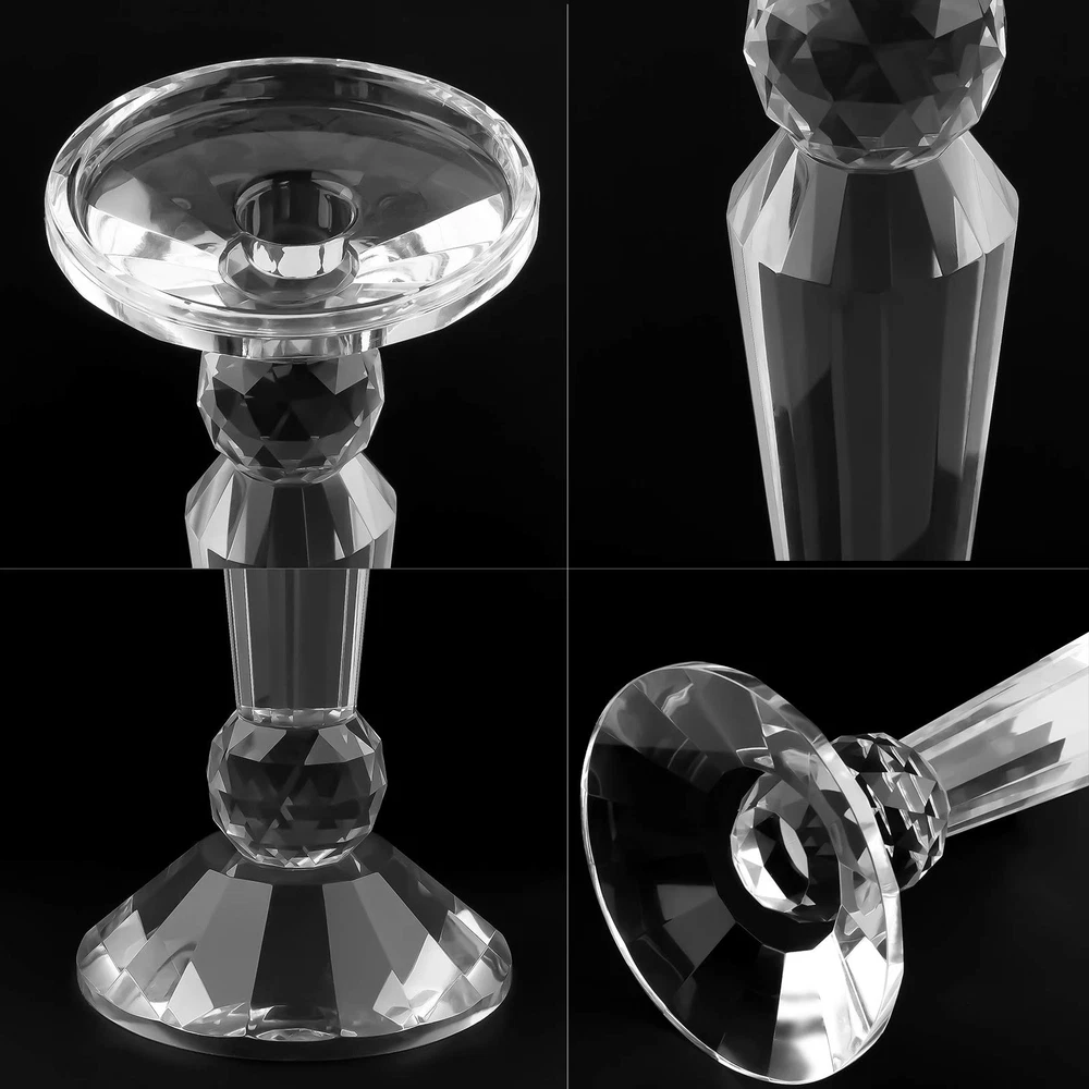 Crystal Candlestick Holder Pack of 2 for pillar candle or taper candle, double-functional. handmade cut, High-quality K9 Crystal, Totally solid. Diameter-3.9'', Height-10.6''. Heavy-duty, durable design. No bubbles, sharp corners and wrinkles on the surface, beautiful. This exquisite crystal candle holder comes with a gifted box, the perfect gift for Friends and Family. A great centerpiece for home-table. The perfect choice to create a beautiful/relaxing atmosphere with a warm and soft light. It will be a great centerpiece decorative candle holder set for the home table, Valentine's Day weddings, parties, new year, or other special holidays or events. After-sales service: We committed to providing the most reliable with the best after-sales service for all our customers. If you have any questions please feel free to us, we will do our best to solve the problem.