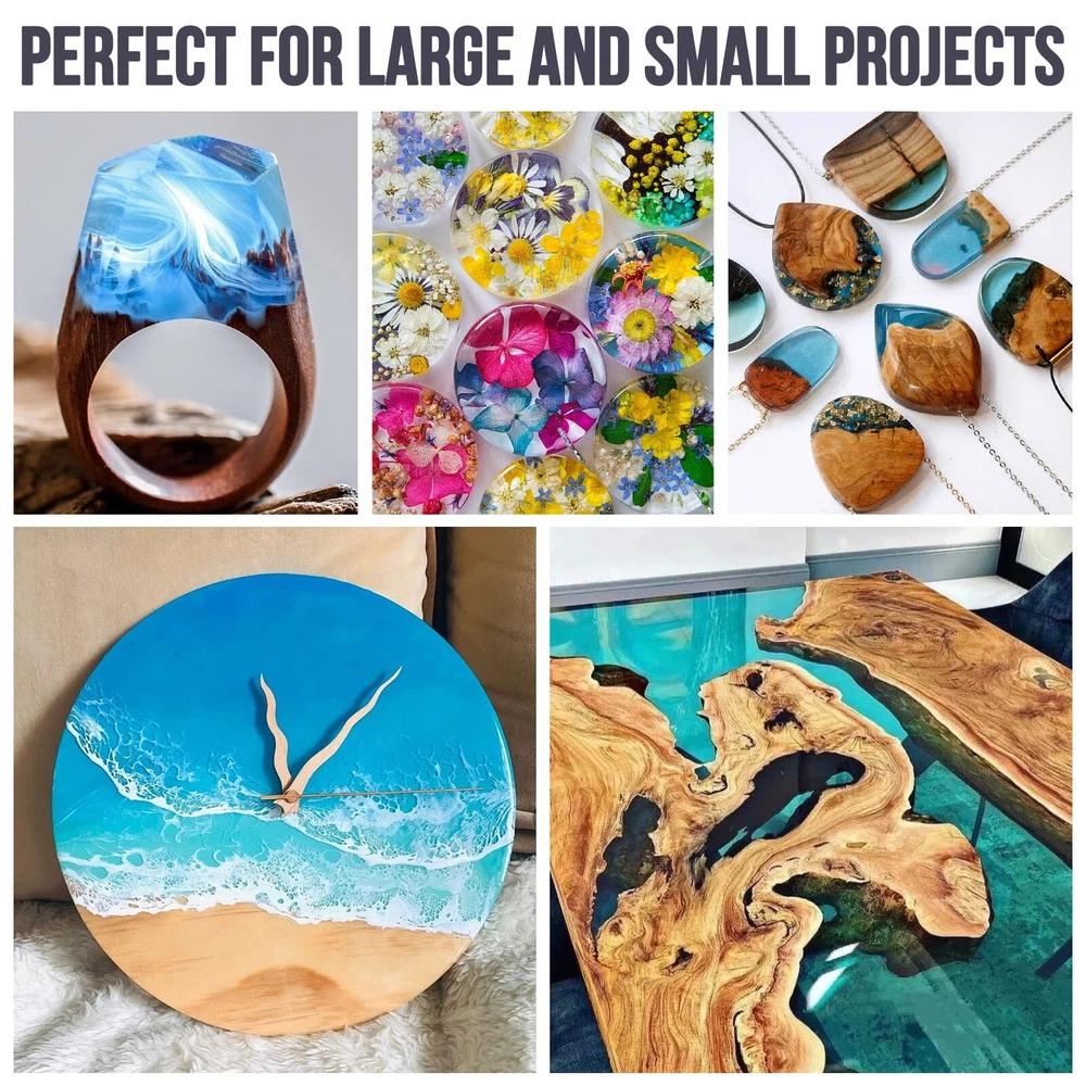 Epoxy Resin 2 Gallon - Crystal Clear Epoxy Resin Kit - Self-Leveling, High-Glossy, No Yellowing, No Bubbles Casting Resin Perfect for Crafts, Table Tops, DIY 1:1 Ratio π [EASY TO USE AND FAST CURING] Simply mix the resin and curing agent in a 1:1 volume ratio to start using. It has a 45 minute working time, making it perfect for beginners and allows time to mix bright colors for eye-catching creations. The easy to pour epoxy resin formula can self level and smooth. It will quickly solidify within 8-24 hours; Even if you haven't been exposed to it before, you can start quickly. π [SELF DEFOAMING] Our formula adds defoamer, which automatically releases trapped bubbles and has strong defoaming ability. It is recommended that each layer should not exceed 1/4 inch, which can be quickly and completely eliminated. To achieve perfect surface treatment in cold weather: preheat the resin and hardener before use. Our epoxy resin kit is safe, reliable, and non flammable. π [ULTRA HIGH GLOSS CRYSTAL TRANSPARENT EPOXY RESIN] Professional grade transparent epoxy resin and hardener are a perfect formula that can make your art vibrant, long-lasting, scratch resistant, moisture-resistant, rock hard, and have a glass like surface treatment, long-lasting, ultra transparent appearance, and will not turn yellow. π [SUITABLE FOR BEGINNERS & PROS] Resin set has everything you need for resin crafts! Includes 1 Gallon resin, 1 Gallon hardener, 2 Compression pump head comes, comes with a detailed instruction,which introduces common problems and solutions in resin production. Beginners can conduct a small amount of testing before work. π [WIDELY USED] Our resin is suitable for various DIY process projects, such as making jewelry, coasters, wooden furniture, tabletops, countertops, paints, etc. It fits perfectly with the silicone mold and will not cause the mold to tear. Don't limit your imagination, create works that you enjoy. If there are any issues (leakage, loss, usage issues), please feel free to contact us and we will provide a replacement or guarantee. Epoxy Resin 2 Gallon, Crystal Clear Epoxy Resin Kit, High-Gloss & Bubbles Free Resin and Hardener Kit, Art Resin Casting Resin for Art Crafts, Jewelry Making, Wood & Resin Molds(1 Gallon x 2) Shipping We offer FREE shipping on all orders! We ship within Three business days of payment, usually sooner. We use a selection of shipping services such as UPS, FedEx, USPS etc. We only ship to the lower 48 states, no APO/FPO addresses or PO Boxes allowed. Local pickups and combined shipping options are not provided at this time. Return You can return a product for up to 30 days from the date you purchased it. Any product you return must be in the same condition you received it and in the original packaging. Please keep the receipt. Payment We accept payment by any of the following methods: PayPal Please pay as soon as possible after winning an auction, as that will allow us to post your item to you sooner! Feedback Customer satisfaction is very important to us. If you have any problem with your order, please contact us and we will do our best to make you satisfied. Contact Us If you have any queries, please contact us via ebay. We usually respond within 24 hours on weekdays. Please visit our eBay store to check out other items for sale! Thank you for shopping at our store.