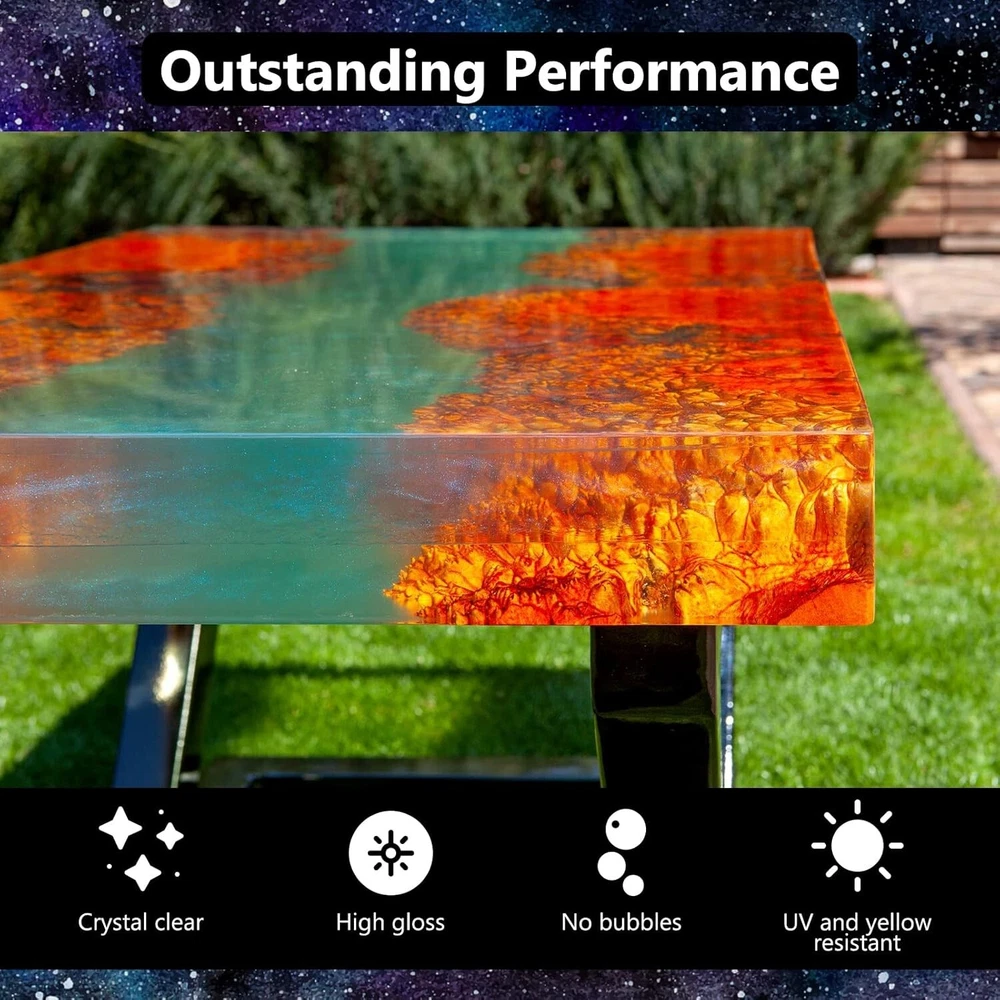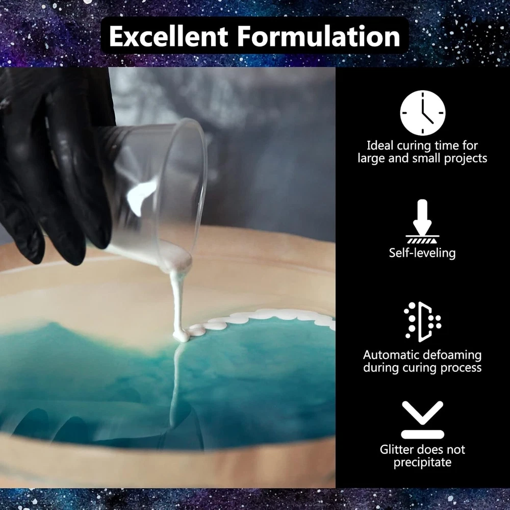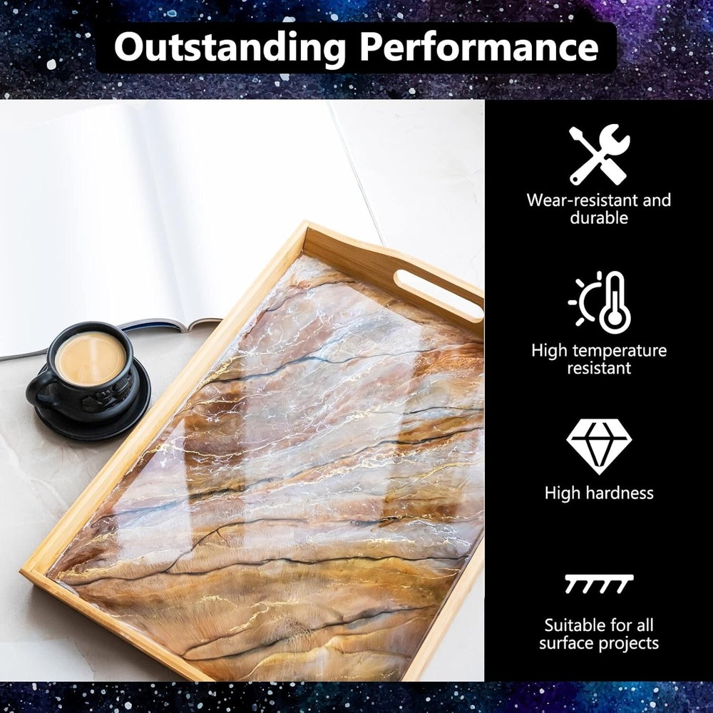 【Perfect Epoxy Resin Kit】:Includes 16OZ clear resin, 16OZ clear hardener, 10 x 240ml measuring cups, 2 x plastic spatulas, 10 x wooden stirring sticks, 2 x gloves, 2 x droppers. Everything you need to start your project is included, perfect for experienced people and beginners. 【High Quality Resin Epoxy】:Crystal clear, easy to mix, less bubbles and self defoaming self-leveling function, safe and non-toxic, filler does not settle after mixing, easy to complete perfect works without worry. 【Perfect Works】:Glossy surface after the table top epoxy resin is cured, perfect texture, no yellowing and high temperature resistance, wear-resistant and durable, ideal for projects such as desktop coating. 【Easy to Use】:Epoxy resin 1:1 easy to mix, 8 hours drying 24 hours curing, resin heat dissipation temperature is not high will not damage the mold, easy to use very suitable. 【Wide Range of Applications】:Ideal for casting, coating, artwork, suitable for coasters, countertops, crafts, jewelry making, painting, molds, woodwork, etc. Create your great works.