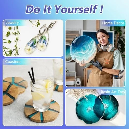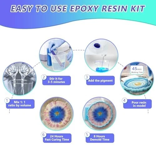 **Premium Epoxy Resin Kit: Crystal Clear, Fast-Curing, and Easy-to-Use** Discover the perfect blend of simplicity and quality with our premium epoxy resin kit, designed for both beginners and seasoned artists. Achieve flawless results effortlessly with a straightforward 1:1 mixing ratio of resin to hardener, complemented by a self-leveling feature that saves you time and ensures a smooth finish. Our epoxy resin boasts a crystal-clear, high-gloss surface that resists yellowing, thanks to advanced stabilization additives. This UV-resistant formula not only enhances the vibrancy of your creations but also provides long-lasting protection against scratches and moisture. Experience bubble-free clarity with our anti-foaming agents, making it ideal for projects like flower preservation. Quick to cure, your masterpiece will be rock-hard within 8 hours, with a hardness reaching 90 HV+. Safe and non-toxic, our epoxy resin is free from BPA and VOCs, offering an easy-to-pour formula that solidifies swiftly within 8-24 hours. With a working time of 40 minutes at an optimal temperature of 77℉/25℃, even newcomers can dive into their creative endeavors with ease. Versatile in application, our resin is perfect for crafting jewelry, coasters, furniture surfaces, and more, fitting seamlessly into silicone molds without causing damage. With a long shelf life of one year and dedicated customer support ready to address any issues promptly, choose our epoxy resin kit for your next DIY project and unleash your imagination with confidence.