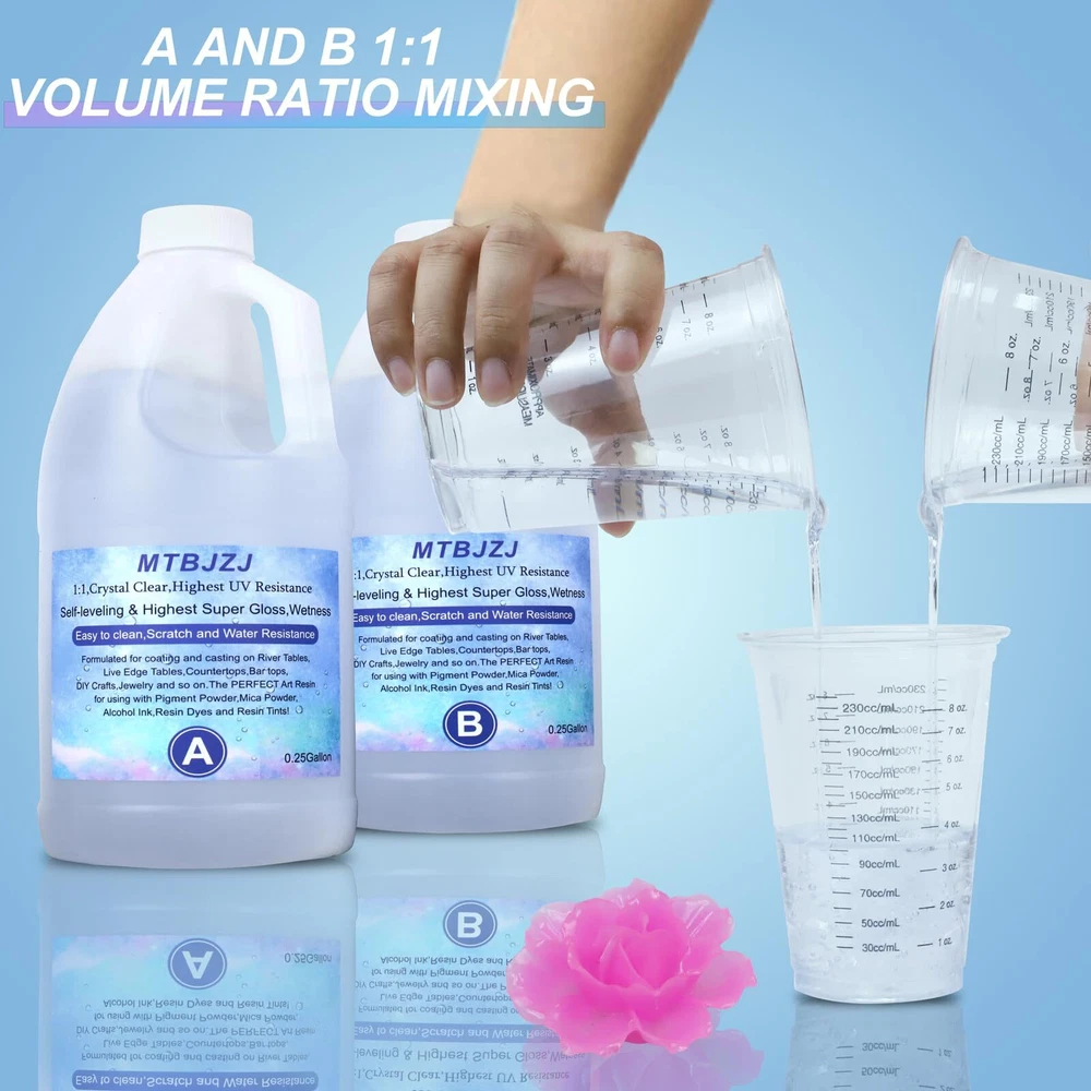 Crystal Clear Epoxy Resin - Epoxy Resin Kit Scratch Resistant, 1/2 Gallon 【High Quality Resin】Our Epoxy Resin is transparent without any bubbles,After completely curing, the hardness is extremely wear-resistant and difficult to break. epoxy resin kit allowing you to create stunning jewelry and crafts with ease.clear resin with an self-leveling characteristic.giving you the perfect presentation. 【Suitable for beginners】 Using our MTBJZJ epoxy resin kit for DIY projects.casting resin resists heat, scratches, and yellowing - ideal for protecting your artwork. Which is very suitable for the beginners a set of epoxy resin.Comes with Mica powder*3pcs,Disposable gloves*1pcs, wood chips*4pcs, measuring cup*4pcs, scraper*1pcs, silicone stirring stick*1pcs, spoon*3pcs.All the tools you need to get your creations started are included to get you started quickly. 【Easy to Use 】You just mix the resin A and hardener B with 1:1 volume ratio then it's ready to use.Epoxy project will self leveling and self defoaming,just waiting for dry. You also enjoy the 30 minute working time that enough to do various creative art epoxy resin project. 【Self Defoaming】 Our formula adds defoamer, lets resin epoxy resin which automatically releases trapped bubbles and has strong defoaming ability. can be quickly and completely eliminated. Our epoxy resin kit is safe, reliable, and non flammable. 【Widely Application】Our art epoxy resin is perfect for clear resin, coating, artwork.clear epoxy resin suitable for coasters, countertops, crafts, jewelry making, painting, molds, woodwork and more. crystal clear epoxy resin fits perfectly with silicone molds and won't cause molds to tear.If there are any problems with the resin epoxy kit (leakage, loss, usage problems), please feel free to contact us, are always at your. Our MTBJZJ crystal clear epoxy resin is your ultimate solution for all your molding and casting needs. This 1 gallon resin epoxy is crafted with the finest quality materials, ensuring a crystal clear finish that is perfect for a variety of applications. The self-leveling feature allows for effortless pouring and easy application, making it ideal for both professionals and beginners. With a 1:1 ratio, this epoxy resin kit offers precise measurements, ensuring accurate results every time. Its non-toxic nature provides a safe working environment, allowing you to unleash your creativity without any worries. Whether you are creating stunning jewelry pieces, casting molds, or indulging in DIY arts and crafts, this clear transparent resin will exceed your expectations. Its superior coating quality makes it perfect for bars and tabletop art, providing a smooth and glossy finish. With the trusted MTBJZJ of epoxy resin kit, you can transform your artistic visions into reality effortlessly. Don't miss out on our MTBJZJ clear table top epoxy resin that will take your creations to the next level. Shipping We offer FREE shipping on all orders! We ship within Three business days of payment, usually sooner. We use a selection of shipping services such as UPS, FedEx, USPS etc. We only ship to the lower 48 states, no APO/FPO addresses or PO Boxes allowed. Local pickups and combined shipping options are not provided at this time. Return You can return a product for up to 30 days from the date you purchased it. Any product you return must be in the same condition you received it and in the original packaging. Please keep the receipt. Payment We accept payment by any of the following methods: PayPal Please pay as soon as possible after winning an auction, as that will allow us to post your item to you sooner! Feedback Customer satisfaction is very important to us. If you have any problem with your order, please contact us and we will do our best to make you satisfied. Contact Us If you have any queries, please contact us via ebay. We usually respond within 24 hours on weekdays. Please visit our eBay store to check out other items for sale! Thank you for shopping at our store.