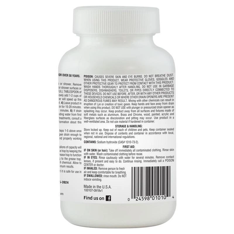 You may also like Car Duster Plastic Handle Wax Treated Cotton Mop Scratch Free Dust Removal New 23.28 USD 24.51 USD Free shipping 5% off 26" Plastic Handle Car Duster Wax Treated Cotton Mop Scratch Free Dust Remover 23.28 USD 24.51 USD Free shipping 5% off Clean Shot Crystal Drainer Opener is a professional grade, highest active content, crystal flake drain opener that is fully activated with hot water. Designed for use in virtually all small drains and grease traps as it is a non-acid formula. The fast-acting formula works in 60 seconds to dissolve built-up grease, oils, hair and soap scum. Use it as a clog remover and a drain opener. Crystal Flake Drain Opener Works in minutes Dissolves Grease and Hair Clog Remover and Drain Cleaner Non Acid Formula Safe for all pipes You may also like 10" Cake Stand w/Glass Cover Vintage Ceramic Baker Home Ktchen Milk White New 51.18 USD 53.87 USD Free shipping 5% off Camping Folding Chair W/ Cup Holder Portable 500 lbs Durable Seat Outdoor Travel 75.13 USD 79.08 USD Free shipping 5% off Soft Sided Cooler Brown Outdoor Activities Cargo Pockets PEVA Insulation New 38.37 USD 40.39 USD Free shipping 5% off Soft & Safe Bathroom Toilet Paper W/ Individually Wrapped Rolls 2-Ply 48 Rolls 45.56 USD 47.96 USD Free shipping 5% off Insulated Water Bottle 128oz Stainless Steel Thermos Leak Proof Ergonomic Handle 42.08 USD 44.29 USD Free shipping 5% off Count & Win Sports Center Basketball & Soccer Toy for Toddlers Teaches Physical 38.23 USD 40.24 USD Free shipping 5% off Grey Ombre Reversible Bed-in-a-Bag Comforter Set Sheets Queen Adult Unisex Home 47.31 USD 49.8 USD Free shipping 5% off Flextreme Heavy Duty Watering Hose 5/8 in X 50 Ft Outdoor UV-resistant 400 PSI 44.72 USD 47.07 USD Free shipping 5% off Pet Grooming Vacuum 13000PA Suction Shedding Hair Trimmer Cats Dogs 5 Tools 2.3L 114.85 USD 120.89 USD Free shipping 5% off Durable 19lbs Black Patio Umbrella Base Stand Outdoor Garden Poolside Oasis New 45.98 USD 48.4 USD Free shipping 5% off Toddler Step Stool Kitchen Tower Safe Durable Easy Reach Self-Help Skills New 87.17 USD 91.76 USD Free shipping 5% off Wood Gun Rack Storage Display 6 Rifles Shotguns W/ Drawer Easy Assembly New 71.81 USD 75.59 USD Free shipping 5% off