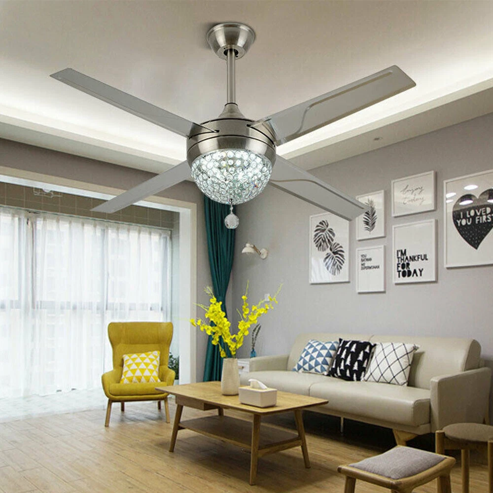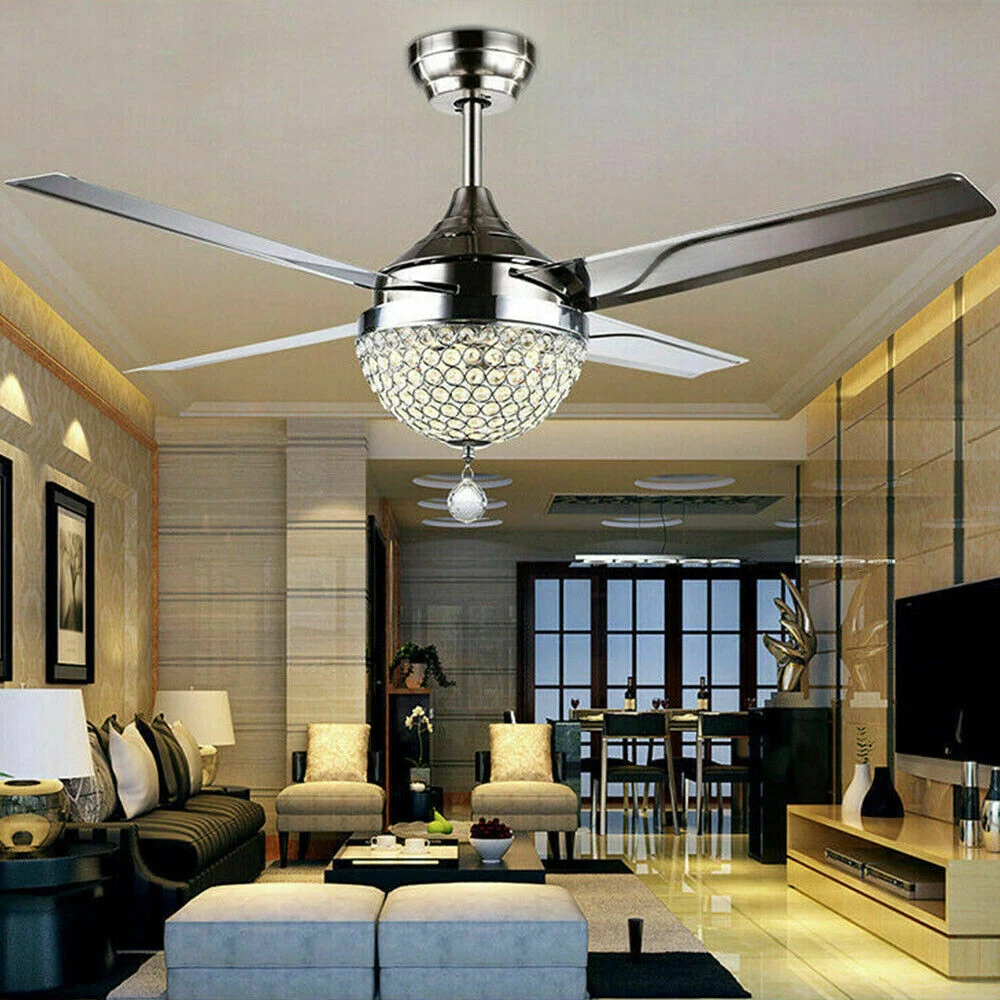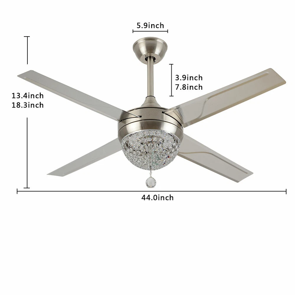 Ceiling Fans HCX185-US simple chandelier fan made of premium materials for stable operation and longer life windward ceiling fan use metal decoration dull clock, more tight security and pursuit the excellence quality for you About this item 【Premium Material】 : A unique metal round arched lampshade is used, bright crystal decoration is placed on the outside. simple but elegant, 4-Stainless Steel Blades, for great air movement. 2 downrod provide 【Great Looking】: Ceiling fan with remote: LED lights have 3 color changes (3000K-4500K-6000K), Fan has 3 speed settings (Low-Mid-High). All these functions can be easily controlled by remote 【Motor】with metal body is designed the imported silicon steel sheet and imported premium bearings, It can extend longer life and smooth operation Ceiling Fa Crystal LED Chandelier 3 Speed Ceiling Fan Light Ceiling Fixture + Remote Note:The attached manual is universal version for several products, thus the accessories introduced will be slightly different. The product you received is complete. If you have any issue about installation/operation, please contact customer service for help. 44" LED Remote Control Crystal Ceiling Fan Lamp Chandelier Pendant Light Fixture Product Description ❤ PERFECT DESIGN STYLE/K9 CRYSTAL: LED 3 Color Lights(Yellow Light, White Light, Warm Light),Crystal Light Kit and 4-Stainless Steel Blades, 2 Downrod Indoor Ceiling Fan Have a Sleek and Fashion Appearance ❤ MULTI-FUNCTIONAL/Timing: This LED Ceiling Fan Can Be Used To Lighting, Decoration, 3 Speeds (High/Medium/Low) Settings Make It Easy To Maintain The Ideal Comfort Level ❤ ENERGY SAVING FOR EYE PROTECTION: The Ceiling Fan with Soft and Natural Light, Eye Protection, Energy Saving, Change Your Lighting Life.The Perfect Combination Of The Fuselage, High-Quality Crystal Shade, To Prevent Dazzling, Soft Light, Ceiling Fan More Bright ❤ THREE-SPEED SPEED AND QUIET MOTOR: 3 Speeds (High/Medium/Low) Settings Make It Easy To Maintain The Ideal Comfort Level,Included Remote Control Allows For Quick And Easy On/Off And Speed Adjustments, The Remote Control Design More Human, Makes You Use It So Conveniently Product description Size: 44inch The Detail of Ceiling Fan Product Name: Modern Crystal Chandelier Fixture Finish: Crystal Lampshade Fan Mounting Type: Ceiling Mount, Downrod Mount Blade Pitch: 0 - 12 Degrees Switch: Remote Control Bulbs: LED 3 Light Ceiling Fan Light Light Kit Included Light Direction Multi-directional Suggested Room Size: Small Rooms - Up to 8x10 ft Style: Modern Style Voltage: Voltage: 110V 60Hz Light Direction Multi-directional Shade Finish: Crystal Cover Application places: Living Room, Dining Room, Foyer, Villa, Bedroom, Restaurants What you get: 1. ceiling fan x 1 2. Screws sets x 1 3. Down rods x 2 (10CM & 20CM) 4. Remote control x 1 5. Instruction Manual x 1 Note:The attached manual is universal version for several products, thus the accessories introduced will be slightly different. The product you received is complete. If you have any issue about installation/operation, please contact customer service for help. Payment Delivery details Terms of sales About us Contact us Payment We accept ebay payment 。 Fees such as import duties, taxes are not included in the item price or shipping costs. These charges are the buyer's responsibility. Delivery details Shipping: 2-9 working days to: USA Terms of sales We maintain high standards of excellence and strive for hundred percent customer satisfaction. Feedback is very important to us. We hope that you contact us immediately before you give neutral or negative feedback, so that we can address your concerns. It is impossible to address issues if we do not know about them! About us Your satis faction is our ultimate goal. We work hard to earn your trust and future business. Our certified technicians have tested each item before shipping. The unit comes with 1 year limited warranty on all manufacturing defects. a) If you receive a defective item, you may return it or ask for a discount. Please contact us within 14 days after you receive the package. b) What you returned must be intact and in its original packaging as re? u. Customer is responsible for shipping costs of the returned item. c) We will cover the cost of shipping back t with the shipping rate indicated in the registration page. We will send you a new unit or refund the full payment you paid. Thank you. Contact us Business Hour Business Hour: Monday To Friday: 8:30 AM to 5:00 PM (Beijing China time) Due to time zones, our reply to your questions may not be immediately. But within above working time, we will reply your email within 24 hours. If it's non-workdays, please kindly be patient and wait till Monday. Please contact us with ebay message. Please feel free to contact us if you have any questions. Monday To Friday: 8:30 AM to 5:00 PM (Beijing China time) Due to time zones, our reply to your questions may not be immediately. But within above working time, we will reply your email within 24 hours. If it's non-workdays, please kindly be patient and wait till Monday. Please contact us with ebay message. Please feel free to contact us if you have any questions. Feature 1 Easy installation,Convenient Use,Easy Operation Features: Fast shipping from US Warehouse Transportation does not include canarias OE/OEM Part Number Does not apply MPN ( MPN ) n/a UPC Does not apply Type Ceiling Fan Assembly Required Yes Labels & Certifications Energy Saving, Energy Efficient Installation Area Indoor & Outdoor Mounting Ceiling Mounted Blade Material Stainless Steel Control Style Remote Control Lighting Technology LED LED String/Strip Type / Number of Settings 3 Voltage 110-120V Finish / Number of Speeds 3 Material Stainless Steel, Crystal Sensor Type Light Item Diameter 44 in Cord Color / Country/Region of Manufacture Unknown Fan Width 44 in Number of Blades 4 EC Range / Energy Star / Color Silver Blade Color Silver Power Source Corded Manufacturer N/A D