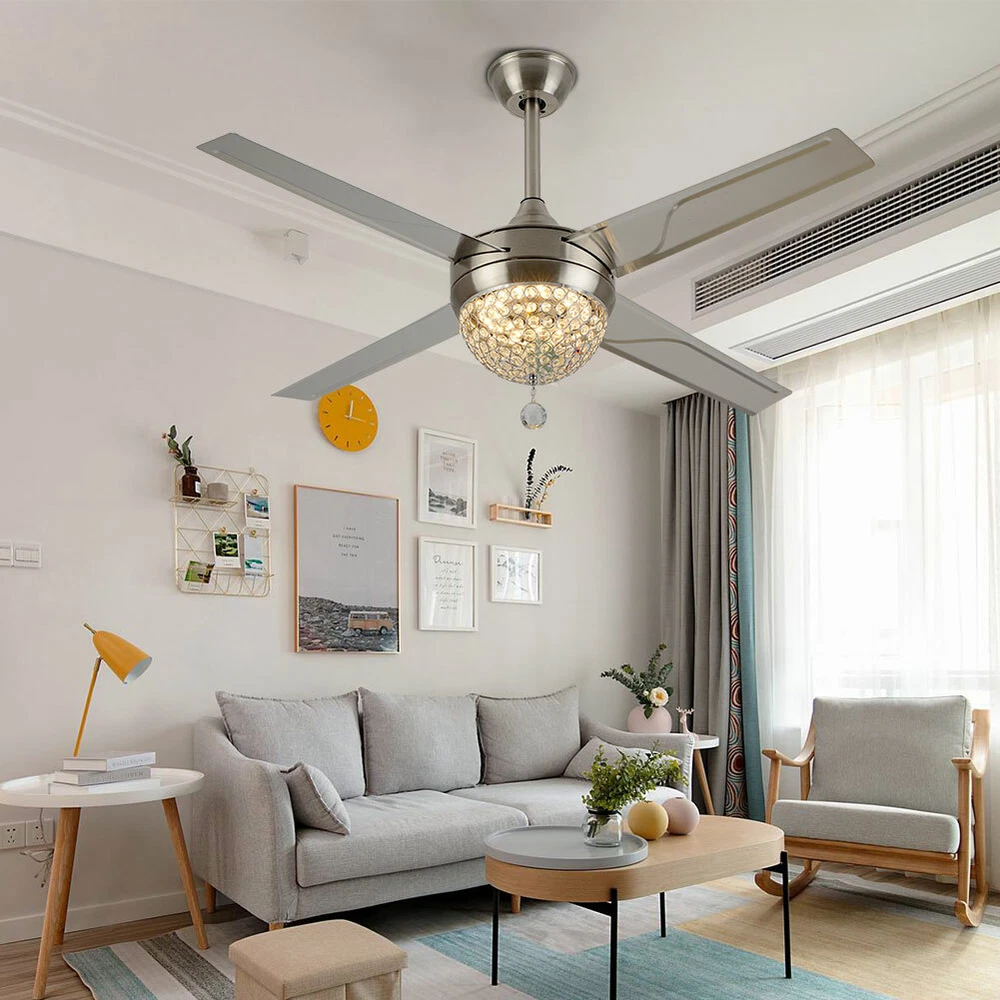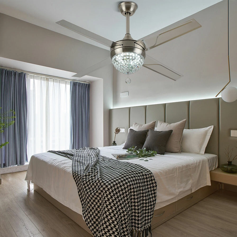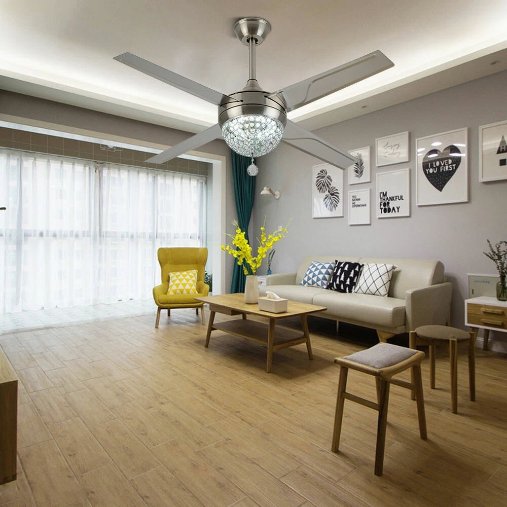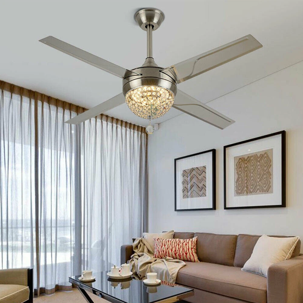 Ceiling Fans HCX185-US simple chandelier fan made of premium materials for stable operation and longer life windward ceiling fan use metal decoration dull clock, more tight security and pursuit the excellence quality for you About this item 【Premium Material】 : A unique metal round arched lampshade is used, bright crystal decoration is placed on the outside. simple but elegant, 4-Stainless Steel Blades, for great air movement. 2 downrod provide 【Great Looking】: Ceiling fan with remote: LED lights have 3 color changes (3000K-4500K-6000K), Fan has 3 speed settings (Low-Mid-High). All these functions can be easily controlled by remote 【Motor】with metal body is designed the imported silicon steel sheet and imported premium bearings, It can extend longer life and smooth operation Ceiling Fa Crystal LED Chandelier 3 Speed Ceiling Fan Light Ceiling Fixture + Remote Note:The attached manual is universal version for several products, thus the accessories introduced will be slightly different. The product you received is complete. If you have any issue about installation/operation, please contact customer service for help. 44" LED Remote Control Crystal Ceiling Fan Lamp Chandelier Pendant Light Fixture Product Description ❤ PERFECT DESIGN STYLE/K9 CRYSTAL: LED 3 Color Lights(Yellow Light, White Light, Warm Light),Crystal Light Kit and 4-Stainless Steel Blades, 2 Downrod Indoor Ceiling Fan Have a Sleek and Fashion Appearance ❤ MULTI-FUNCTIONAL/Timing: This LED Ceiling Fan Can Be Used To Lighting, Decoration, 3 Speeds (High/Medium/Low) Settings Make It Easy To Maintain The Ideal Comfort Level ❤ ENERGY SAVING FOR EYE PROTECTION: The Ceiling Fan with Soft and Natural Light, Eye Protection, Energy Saving, Change Your Lighting Life.The Perfect Combination Of The Fuselage, High-Quality Crystal Shade, To Prevent Dazzling, Soft Light, Ceiling Fan More Bright ❤ THREE-SPEED SPEED AND QUIET MOTOR: 3 Speeds (High/Medium/Low) Settings Make It Easy To Maintain The Ideal Comfort Level,Included Remote Control Allows For Quick And Easy On/Off And Speed Adjustments, The Remote Control Design More Human, Makes You Use It So Conveniently Product description Size: 44inch The Detail of Ceiling Fan Product Name: Modern Crystal Chandelier Fixture Finish: Crystal Lampshade Fan Mounting Type: Ceiling Mount, Downrod Mount Blade Pitch: 0 - 12 Degrees Switch: Remote Control Bulbs: LED 3 Light Ceiling Fan Light Light Kit Included Light Direction Multi-directional Suggested Room Size: Small Rooms - Up to 8x10 ft Style: Modern Style Voltage: Voltage: 110V 60Hz Light Direction Multi-directional Shade Finish: Crystal Cover Application places: Living Room, Dining Room, Foyer, Villa, Bedroom, Restaurants What you get: 1. ceiling fan x 1 2. Screws sets x 1 3. Down rods x 2 (10CM & 20CM) 4. Remote control x 1 5. Instruction Manual x 1 Note:The attached manual is universal version for several products, thus the accessories introduced will be slightly different. The product you received is complete. If you have any issue about installation/operation, please contact customer service for help. Payment Delivery details Terms of sales About us Contact us Payment We accept ebay payment 。 Fees such as import duties, taxes are not included in the item price or shipping costs. These charges are the buyer's responsibility. Delivery details Shipping: 2-9 working days to: USA Terms of sales We maintain high standards of excellence and strive for hundred percent customer satisfaction. Feedback is very important to us. We hope that you contact us immediately before you give neutral or negative feedback, so that we can address your concerns. It is impossible to address issues if we do not know about them! About us Your satis faction is our ultimate goal. We work hard to earn your trust and future business. Our certified technicians have tested each item before shipping. The unit comes with 1 year limited warranty on all manufacturing defects. a) If you receive a defective item, you may return it or ask for a discount. Please contact us within 14 days after you receive the package. b) What you returned must be intact and in its original packaging as re? u. Customer is responsible for shipping costs of the returned item. c) We will cover the cost of shipping back t with the shipping rate indicated in the registration page. We will send you a new unit or refund the full payment you paid. Thank you. Contact us Business Hour Business Hour: Monday To Friday: 8:30 AM to 5:00 PM (Beijing China time) Due to time zones, our reply to your questions may not be immediately. But within above working time, we will reply your email within 24 hours. If it's non-workdays, please kindly be patient and wait till Monday. Please contact us with ebay message. Please feel free to contact us if you have any questions. Monday To Friday: 8:30 AM to 5:00 PM (Beijing China time) Due to time zones, our reply to your questions may not be immediately. But within above working time, we will reply your email within 24 hours. If it's non-workdays, please kindly be patient and wait till Monday. Please contact us with ebay message. Please feel free to contact us if you have any questions. Feature 1 Easy installation,Convenient Use,Easy Operation Features: Fast shipping from US Warehouse Transportation does not include canarias OE/OEM Part Number Does not apply MPN ( MPN ) n/a UPC Does not apply Type Ceiling Fan Assembly Required Yes Labels & Certifications Energy Saving, Energy Efficient Installation Area Indoor & Outdoor Mounting Ceiling Mounted Blade Material Stainless Steel Control Style Remote Control Lighting Technology LED LED String/Strip Type / Number of Settings 3 Voltage 110-120V Finish / Number of Speeds 3 Material Stainless Steel, Crystal Sensor Type Light Item Diameter 44 in Cord Color / Country/Region of Manufacture Unknown Fan Width 44 in Number of Blades 4 EC Range / Energy Star / Color Silver Blade Color Silver Power Source Corded Manufacturer N/A D
