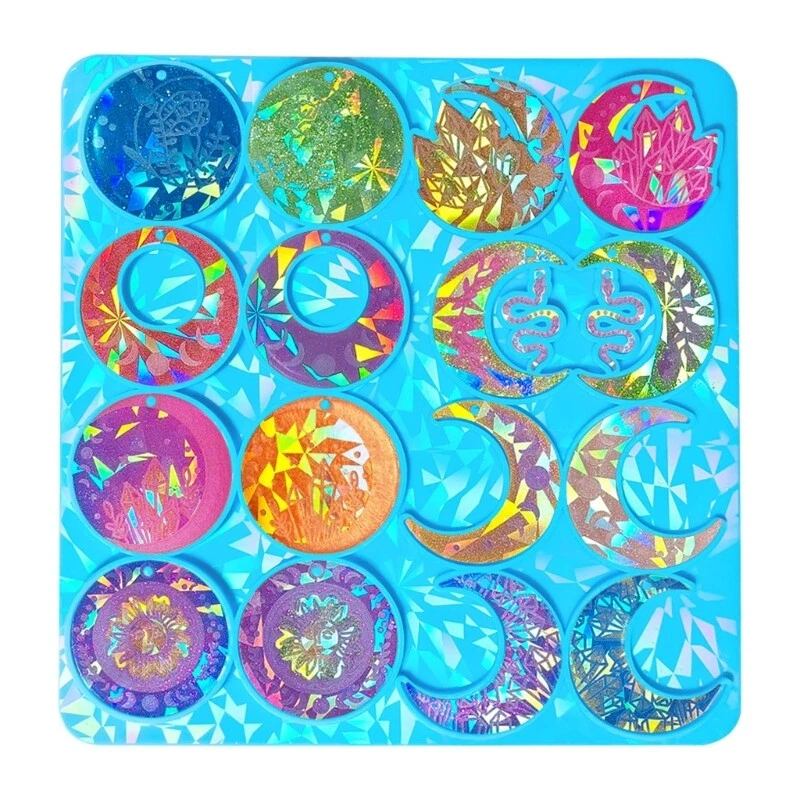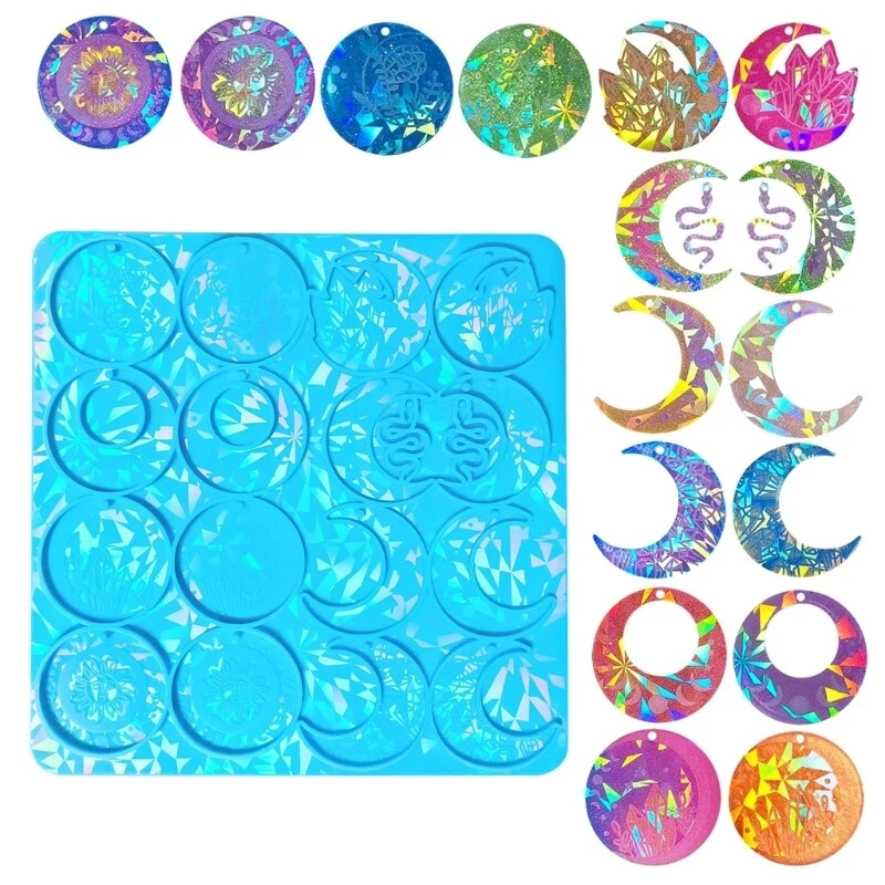 Features: Create and unique accessories with our handmade crystal moon and pendant mold. Choose from a variety of styles, including crystal, moon, and to personalize your jewelry Our molds are made with durable and reusable high temperature resistant silicone for long lasting use. Perfect for DIY enthusiasts and fashion lovers who enjoy expressing their creativity through customized jewelry. Add artistic touch to your home decor with our pendant molds, whether used as pendants, earrings, or decorative items for curtains and doorknobs. Surprise your loved ones with handmade gifts made from our pendant molds, perfect for parties, weddings, and other special occasions. These molds serve as delightful decorations, adding to any celebration. Specifications: Material:Silicone Color:White/Black/Blue Size:Approx.20.8x20.4cm/8.18x8.03inches Package Includes: 1Piece Crystal Moon Pendant Silicone Mold note: Please allow 1-2cm error due to manual measurement. Please make sure you do not mind before you bid. Due to the difference between different monitors, the picture may not reflect the actual color of the item. Thank you!