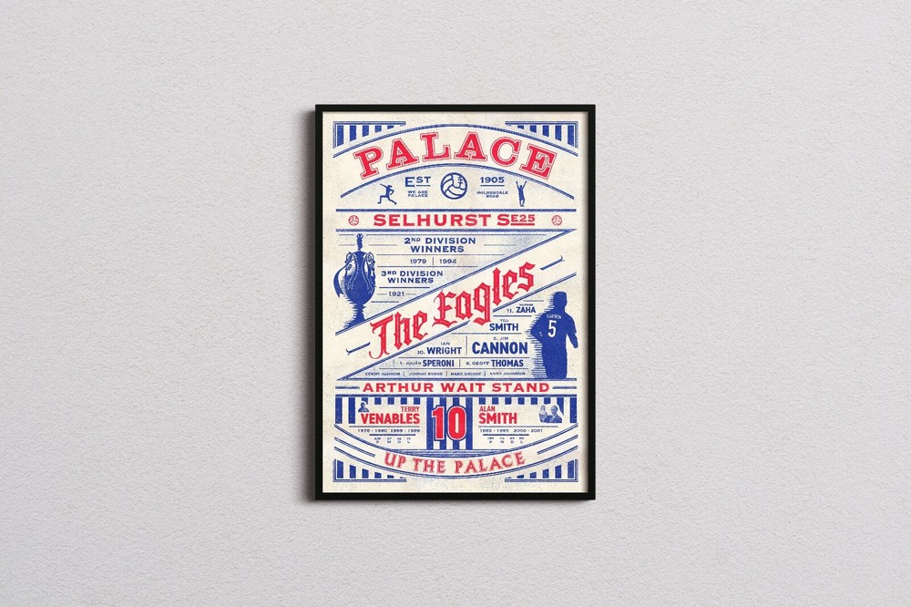 A graphical retro print that celebrates the history of Crystal Palace. This poster print would make the perfect gift for any Crystal Palace supporter, whether it be your dad, your boyfriend or a best friend. You will receive a high-quality print on a lustre finish 260gsm fine art paper, which was carefully selected to elevate the vibrant colours featured in each design. Prints are made using professional Canon Pro printing equipment, which gives much smoother gradient transitions and a wider colour gamut. In other words, more depth and richness to the final print, which helps to create stunning vibrant artwork with amazing reproduction. A Giclée print is highly durable and will last a lifetime without any fading or bronzing. Postage & Packaging: A4 & A3 prints, I will deliver them flat in rigid board backed envelopes. The Poster, A2 & A1 prints will be rolled into sturdy cardboard tubes.