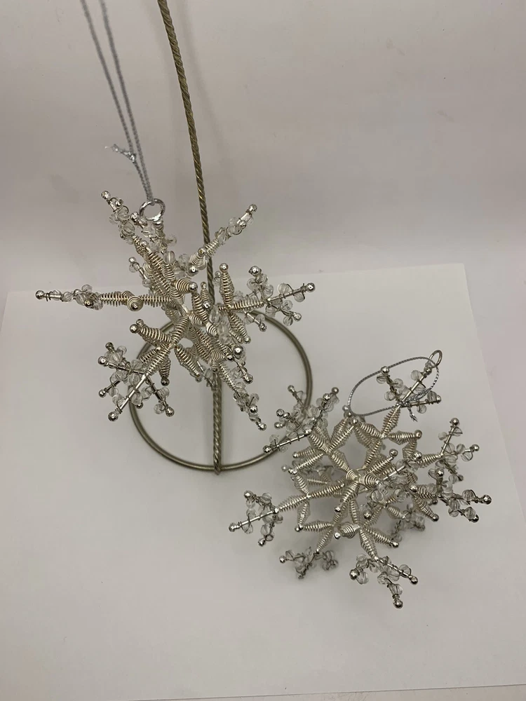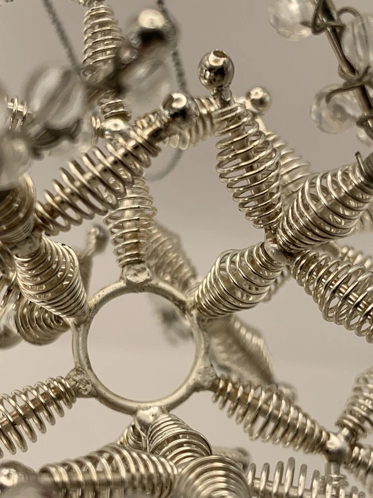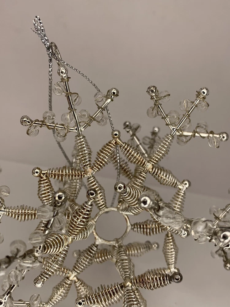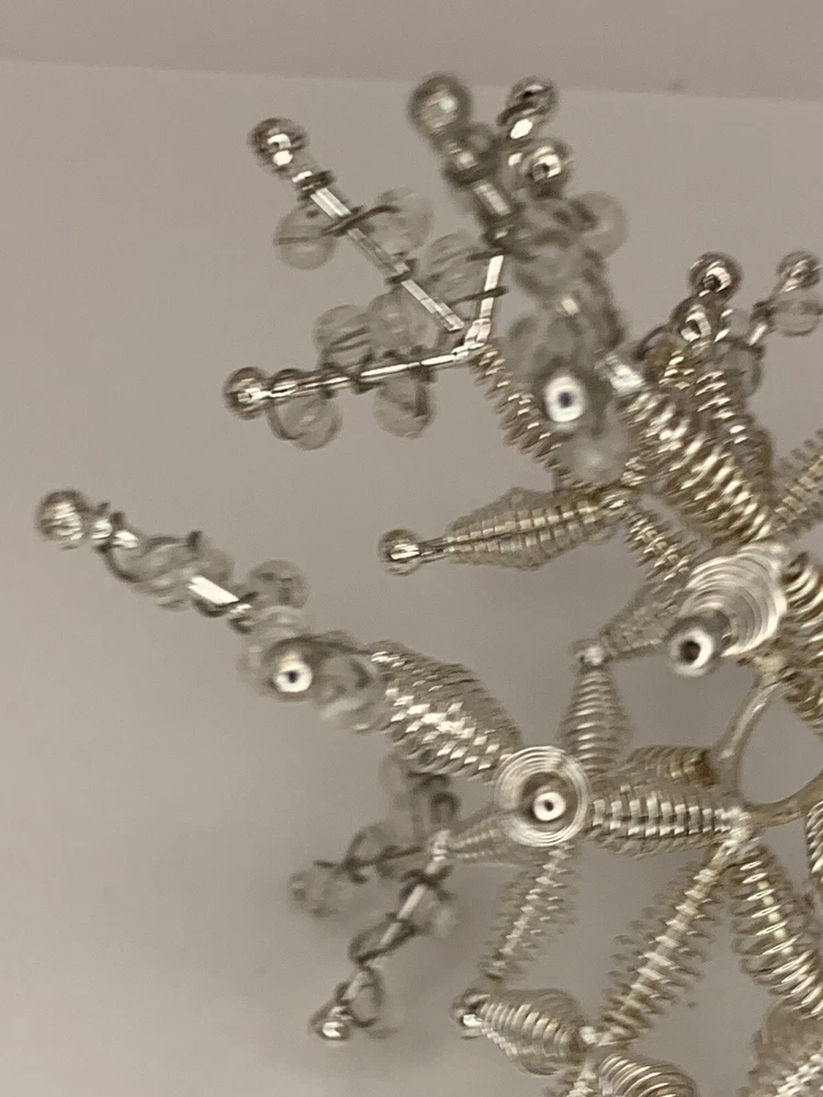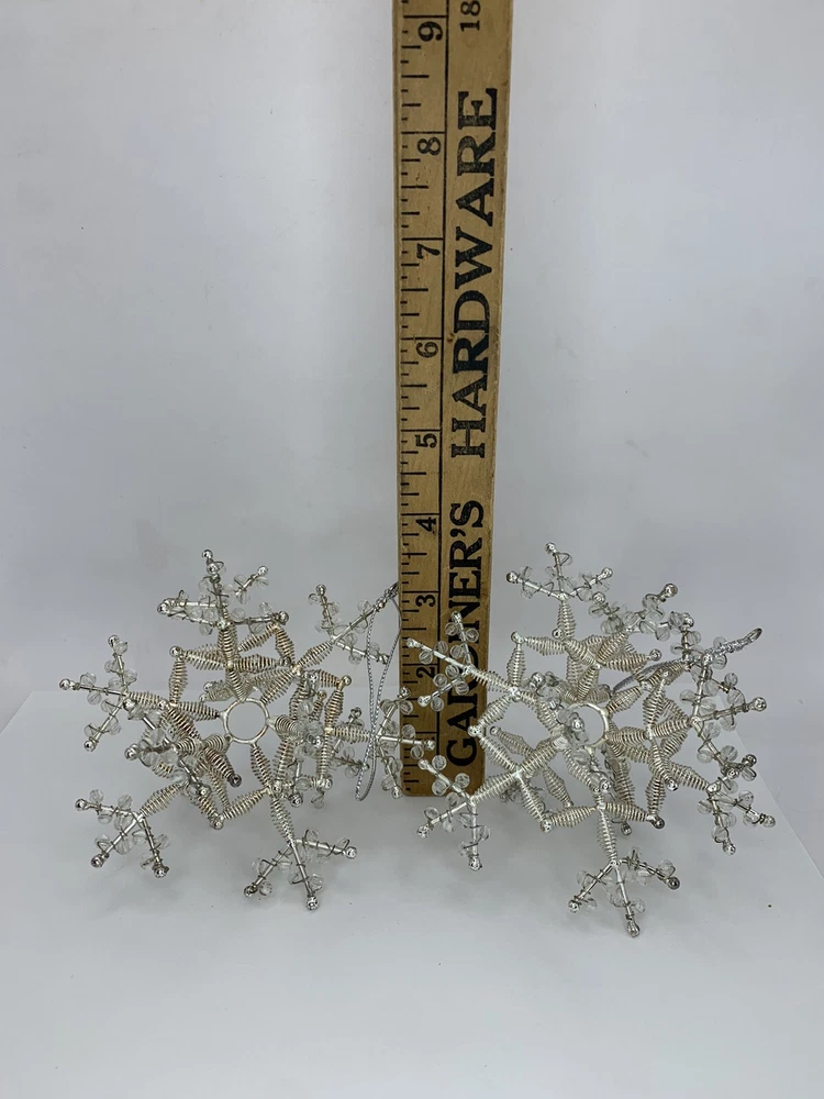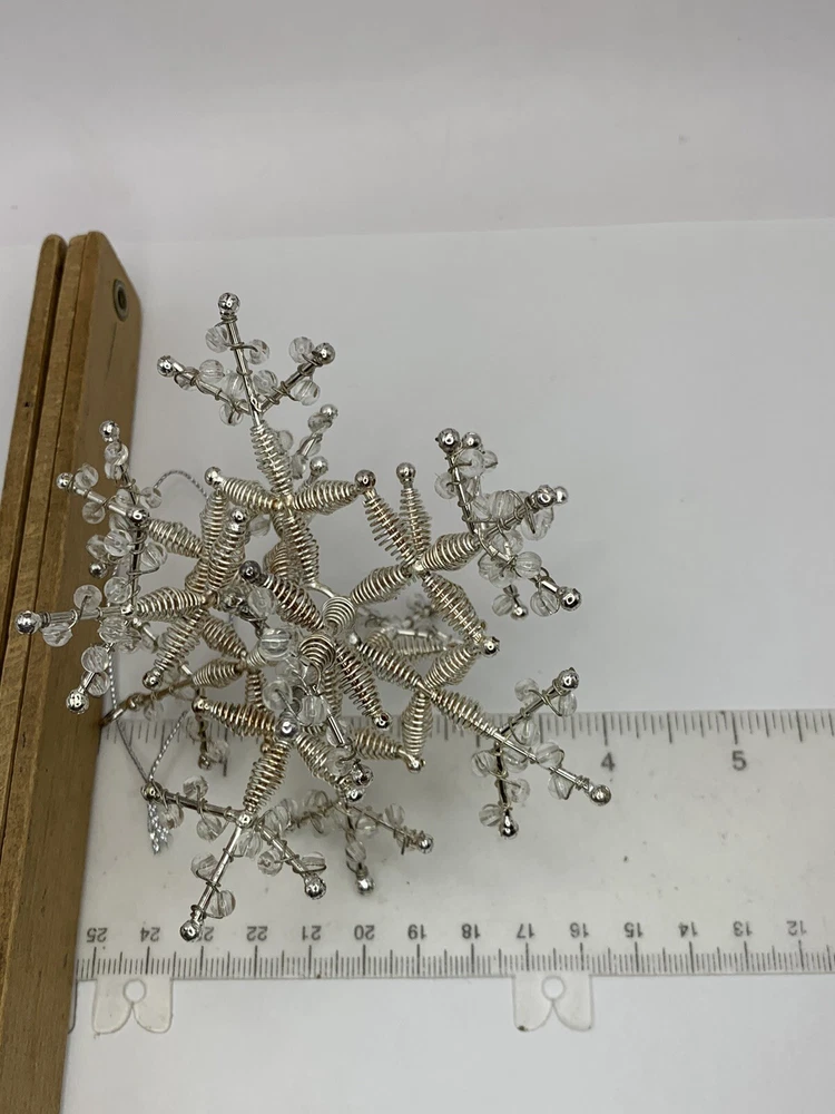 In good/very good condition. Made of plastic crystals and wire to snowflake hanging ornaments. No box or tags. Measurement in photo. Minor expected wear(see photos). Found no chips or cracks, maybe some imperfections in finish and a few marks though none readily seen (see photos, all sides pictured) . Found no Maker's Marks. STAND NOT INCLUDED. Might be small things that were missed so please see all photos. Contact if still questions. Very attractive well done ornaments. ****Pictures very much part of condition assessment, please be sure to view all photos.**** All items sold as-is. Packed with great care. For combined shipping price, please purchase and REQUEST invoice for combined shipping and wait before paying. International Shipping only through eBay's Global Shipping, so no Combined Shipping and will have additional costs associated. Thank you for looking!