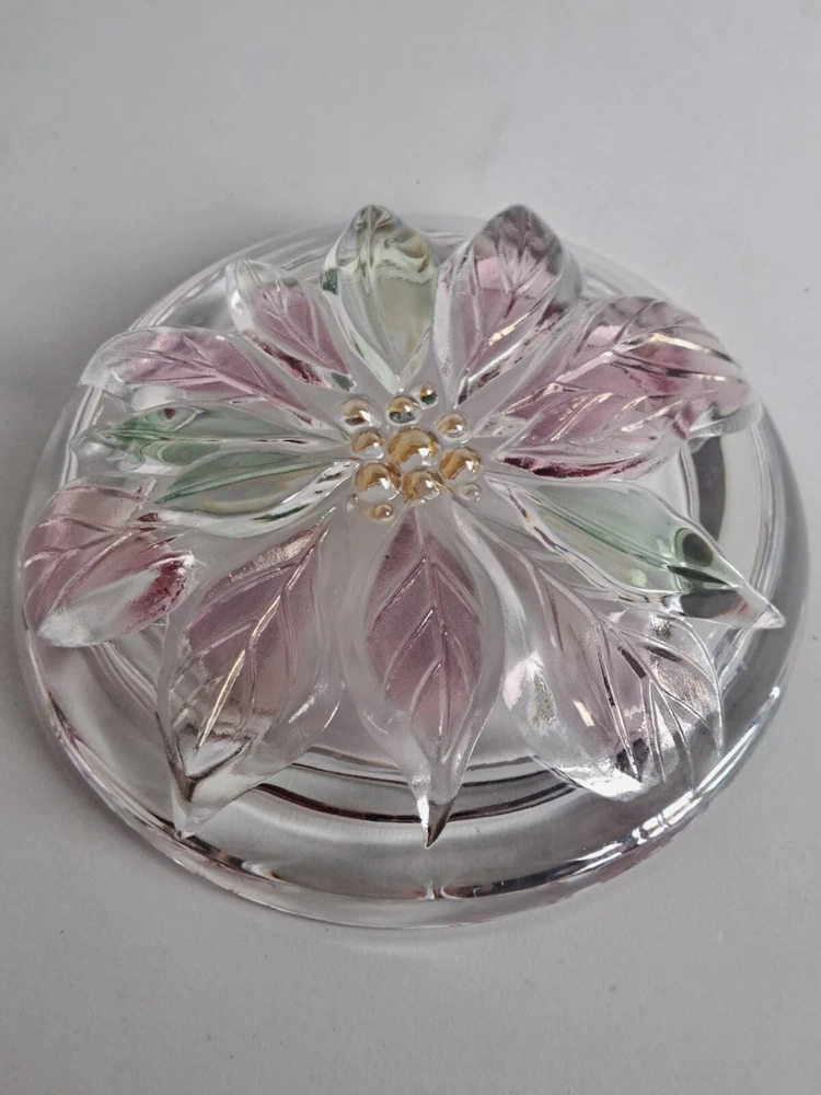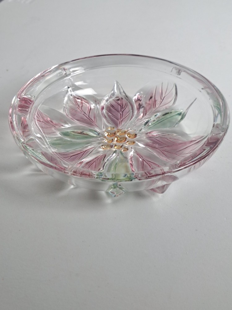 Savoir Vivre ? Round Small Crystal Poinsettia Candy Dish is in Nice Like New Condition. Unmarked. NO BOX. Very Pretty!!