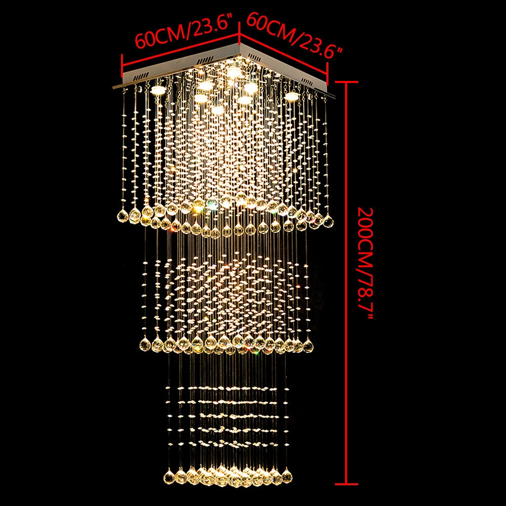 Specification: Category: Lighting Style: Crystal, Modern / Comtemporary Recommended Room Fit: Living Room, bedroom, hotel lobby Recommended room size: 15-35 ㎡ Materials: metal, K9 clear crystal Dimensions: L60cm *W60cm *H200cm Lamp Type: GU10 Lighting Direction: Ambient Light Delivery included or Not: include light bulb Voltage: 110-240V Light Size: L60 x W60 x H200cm/23.6*23.6*78.7inch Net Weight: Appr. 15kg Gross Weight: 16kg Package Size: 68*68*20cm K9 Luxury Crystal Pendant Lamp Ceiling Lighting Chandelier Raindrop Lobby welcome~ Specification: Category: Lighting Style: Crystal, Modern / Comtemporary Recommended Room Fit: Living Room, bedroom, hotel lobby Recommended room size: 15-35 ㎡ Materials: metal, K9 clear crystal Dimensions: L60cm *W60cm *H200cm Lamp Type: GU10 Lighting Direction: Ambient Light Delivery included or Not: include light bulb Voltage: 110-240V Light Size: L60 x W60 x H200cm/23.6*23.6*78.7inch Net Weight: Appr. 15 kg Gross Weight: 16kg Package Size: 68*68*20cm Features: ※ Dimmable option, bright, comfortable light, reduce eye fatigue, protect eyesight ※ Luxury shape, beautiful and elegant ※ LED light source, long life, energy saving, low heat, healthy environment, high color rendering ※ Applicable to different environments such as hotel lobby , living room, bedroom, restaurant etc Application: living room,bedroom,dining room,hotel lobby Package : 1* Ceiling Light Payment Delivery details Terms of sales About us Contact us Payment We accept ebay payment 。 Fees such as import duties, taxes are not included in the item price or shipping costs. These charges are the buyer's responsibility. Delivery details Shipping: 2-9 working days to: USA Terms of sales We maintain high standards of excellence and strive for hundred percent customer satisfaction. Feedback is very important to us. We hope that you contact us immediately before you give neutral or negative feedback, so that we can address your concerns. It is impossible to address issues if we do not know about them! About us Your satis faction is our ultimate goal. We work hard to earn your trust and future business. Our certified technicians have tested each item before shipping. The unit comes with 1 year limited warranty on all manufacturing defects. a) If you receive a defective item, you may return it or ask for a discount. Please contact us within 14 days after you receive the package. b) What you returned must be intact and in its original packaging as re? u. Customer is responsible for shipping costs of the returned item. c) We will cover the cost of shipping back t with the shipping rate indicated in the registration page. We will send you a new unit or refund the full payment you paid. Thank you. Contact us Business Hour Business Hour: Monday To Friday: 8:30 AM to 5:00 PM (Beijing China time) Due to time zones, our reply to your questions may not be immediately. But within above working time, we will reply your email within 24 hours. If it's non-workdays, please kindly be patient and wait till Monday. Please contact us with ebay message. Please feel free to contact us if you have any questions. Monday To Friday: 8:30 AM to 5:00 PM (Beijing China time) Due to time zones, our reply to your questions may not be immediately. But within above working time, we will reply your email within 24 hours. If it's non-workdays, please kindly be patient and wait till Monday. Please contact us with ebay message. Please feel free to contact us if you have any questions. 1.Feature Durable Material,Good quality Brand Unbranded Type Crystal Pendant Lamp Category Lighting Style Crystal, Modern / Comtemporary Recommended Room Fit Living Room, bedroom, hotel lobby Recommended room size 15-35 ㎡ Materials metal, K9 clear crystal Dimension L60cm *W60cm *H200cm Lamp Type GU10 Lighting Direction Ambient Light Delivery included or Not include light bulb Voltage 110-240V Net Weight Appr. 15kg Gross Weight 16kg Package Size 68*68*20cm