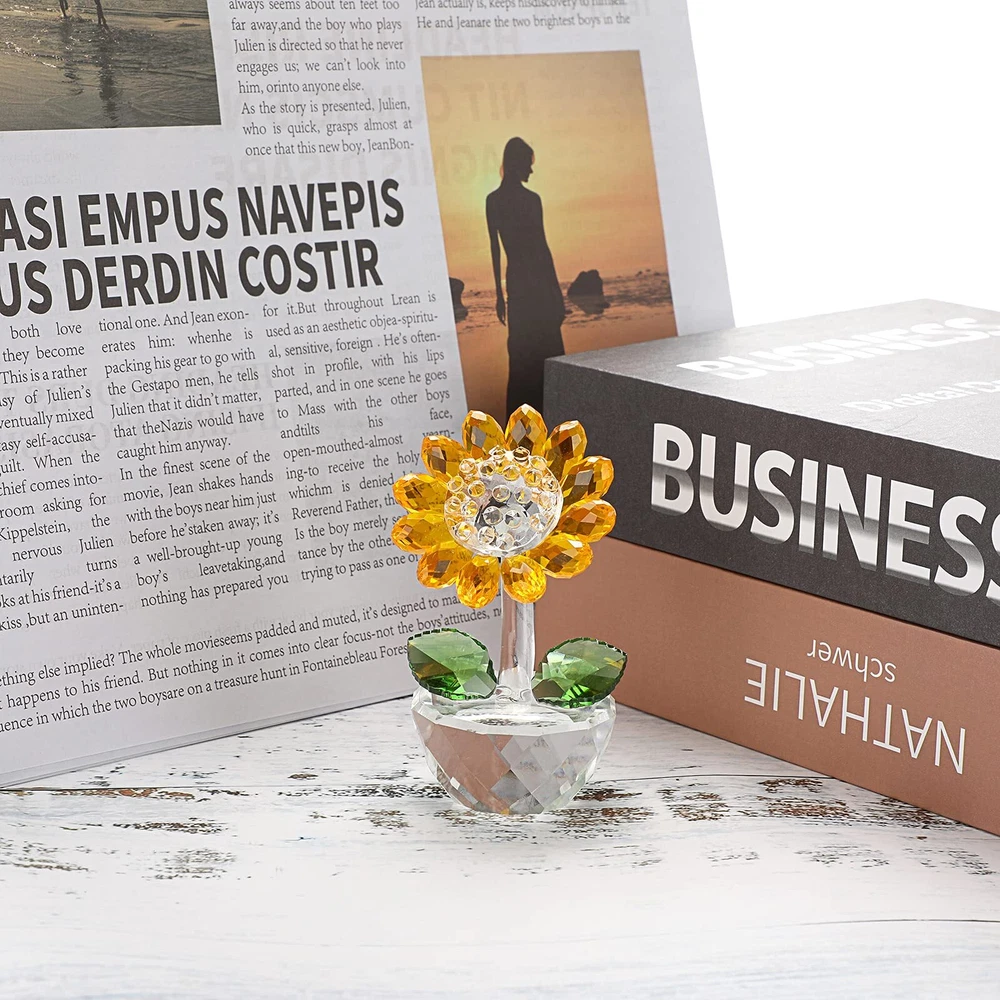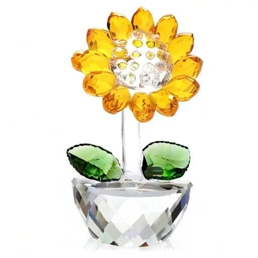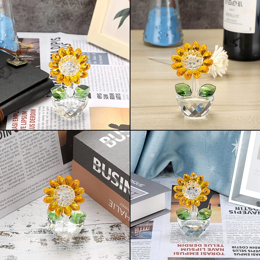 Overall dimension (Total Length x Flower Width x Bottom Dia) is 9cm x 5cm x 5cm / 3.5“ x 1.9“ x 1.9“, its weight is 116.3g / 4.1oz, lightweight and portable. (PLEASE confirm the dimension on the third picture before purchasing!!) Made of premium crystal material, this small sunflower figurine ornament decorated with bud is beautiful, vibrant, sparkly and durable, it will glitter or reflect surrounding light when the sunlight shines on it, looking gorgeous and stunning. With colorful and bright design, this sparkling crystal sunflower is a good choice to decorate your home & office, table, desk, shelves or centerpieces for party. Sunflower represents warmth, luck, hope and happiness, a perfect crystal gift for thanksgiving, christmas, valentines day, birthdays or other festivals, for sunflower lovers or crystal flower collectors. Package includes a crystal sunflower collectible figurines, well packaged into a gift box with foam insert, it can also be used as a practical crystal paperweight, a crystal flower ornament to decorate your space.