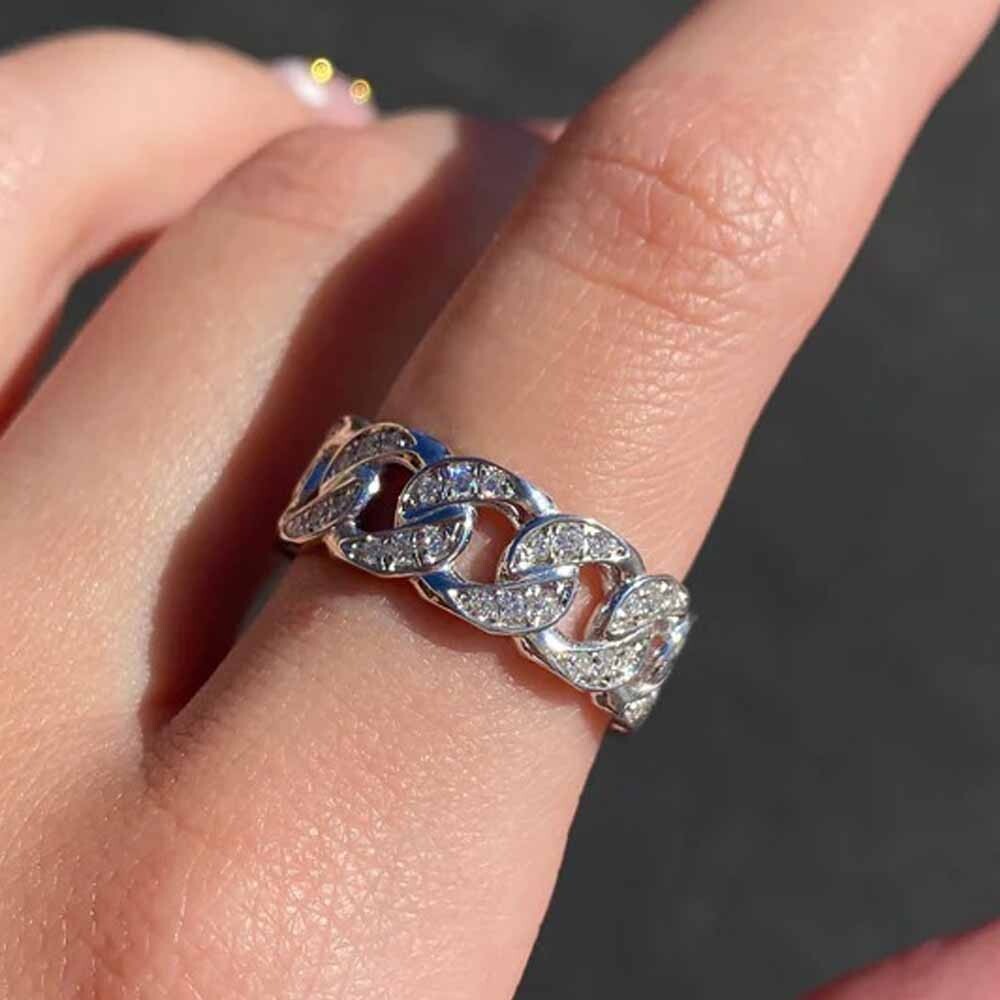 WELCOME TO HARRY GEMSTONES Elevate your style with this stunning men's ring, featuring a round VVS1 clarity grade moissanite stone. The Cuban linking design adds a touch of sophistication to any outfit, making it perfect for weddings or other special occasions. Crafted from high-quality 925 sterling silver, this ring is both durable and eye-catching. With a band width of 8mm, this ring is perfect for those who prefer a subtle yet elegant look. The prong setting style ensures that the moissanite stone is securely in place, while the nickel-free feature makes it comfortable to wear. This ring comes with a certification from IGLA and is available in size 7. Get ready to turn heads with this timeless piece of jewelry.