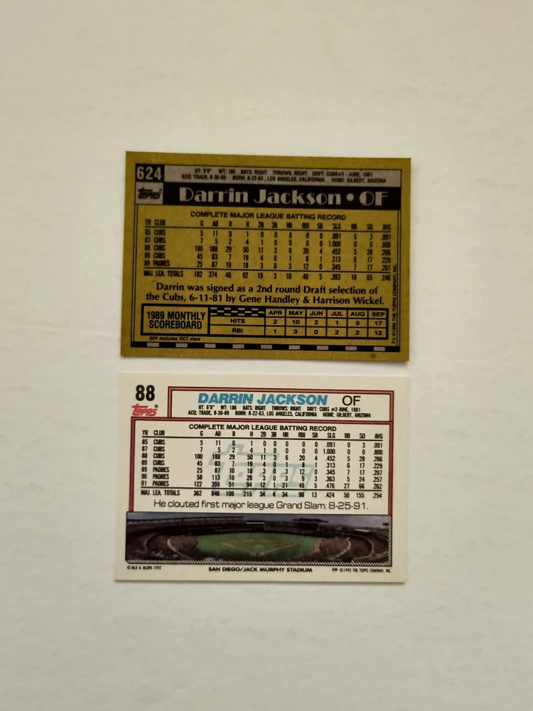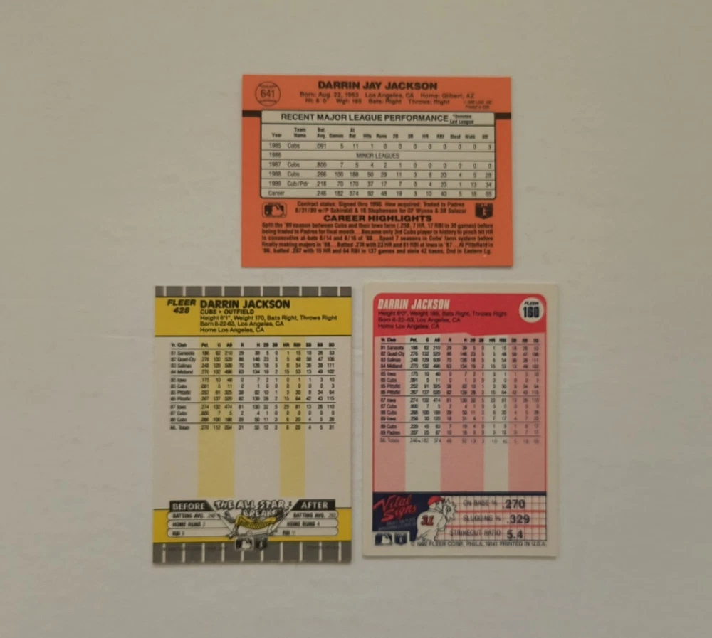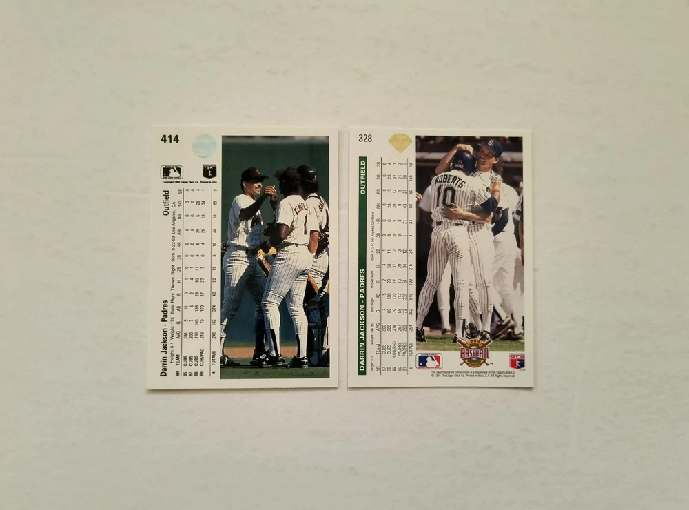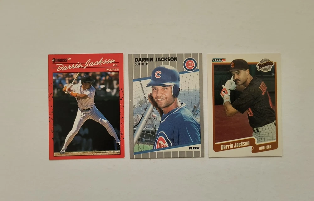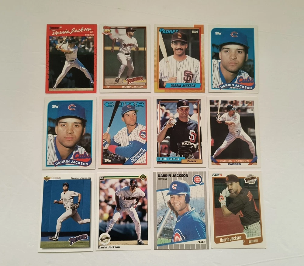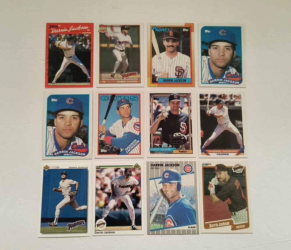 12 Darrin Jackson baseball cards Highlights: 4 Rookie Cards These cards will be shipped in an envelope with stamps, and sent non-machinable. The cards will have protection so that they are safe during delivery.
