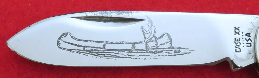 Hi I'm James Parker and I am offering some fine knives for auction from a recent Case Canoe Collection acquisition. The winning bidder pays $5.95 for USPS Ground Advantage Shipping with Delivery Confirmation included in the Shipping price. We recently acquired a great collection of W.R. Case & Sons Canoe patterns. As you have seen, we started listing these a month ago and this one for auction is one right out of this fine Case Canoe Collection. This knife for auction is a 1984 issue Case 5 Dot 62131 New Grind Canoe , 3 5/8" closed, with very nice Genuine Bone (cattle bone) handles and the pinned enclosed Case oval shield. The master Spear blade has the popular Canoe etching and is tang stamped reading Case XX U.S.A. with 6 Dots, dating this a 1984 issue Case knife, while the rear tang of this blade is pattern stamped with 62131. The knife has the very seldom used High Shoulder "New Grind" blades adding a nice custom look and finish as well as equal if not stronger blade strength. This knife has never been used or carried with just some minor spotting on the blades from age. Both blades are tight with great "walk and talk" snap. Please be sure to see the Supersize Photos for the EXACT item you will receive. We will include a brand new unlabeled Case factory box as knives of this period did not come with boxes many times. This fine 1984 issue Case 6 Dot 62131 New Grind Canoe is being offered at No Reserve. Yes, A True No Reserve Auction Where The Bidding Starts At .99 Cents. Thanks for your bids, we appreciate it.