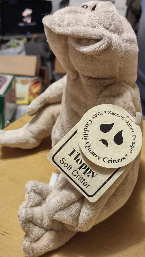 Uncover the charm of the Cuddly Quarry Critters with this delightful 8" Floppy Frog plush. Crafted by Nature's Design, this soft and endearing companion is an ideal gift for any occasion, perfect for frog enthusiasts of all ages. The beige hue brings a touch of realism to this friendly plush, making it a charming addition to any collection or a comforting friend for cozy moments. Belonging to the beloved Character Family of Froggy, this small-sized plush embodies the warmth and joy that a real frog cannot. Thank you for stopping by! If you have any questions please don't hesitate to ask!!