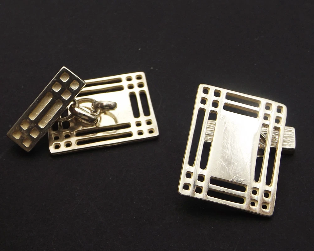 STERLING SILVER CUFFLINKS OBLONG SHAPE SIMPLE RENNIE MACKINTOSH STYLE DESIGN BY CARRICK JEWELLERY LTD CHAIN LINK MARKED 925 FOR STERLING SILVER AND CJL FOR CARRICK JEWELLERY LTD EACH CUFFLINK FRONT MEASURES 15 X 20 MM 9/16" X 13/16" VERY GOOD USED CONDITION Will be sent in a new cufflink box Always happy to combine postage, just let us know when you are finished and we will send a combined invoice. We post every day Monday to Friday, and try to post same day or next day - happy to post Saturday if you ask! We mainly sell used items, so there may be wear, but we try to describe accurately - we might occasionally miss something or even completely mess things up - we are human - but never intentionally and will always try to resolve any issues. Contact me via eBay messages if you have any concerns with your purchase. Please be aware if buying outwith the UK your purchase will have to go through your country’s Customs on arrival - you may be charged import duty and possibly other charges, any such charges are not covered in this sale. Any questions, just contact us via messages, we will get back to you as quickly as we can.