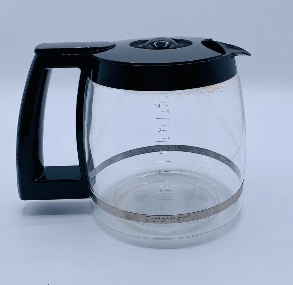 The product is a replacement 14 cup glass coffee pot carafe designed for use with Cuisinart coffee makers, specifically the CBC-7400BC model. It features a sleek black color and is an official product from the Cuisinart brand. This carafe is a practical and essential item for those who need a new or spare coffee pot for their Cuisinart machine, ensuring they can continue to enjoy freshly brewed coffee without any interruption.