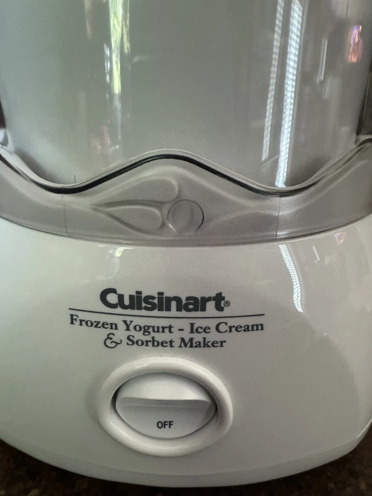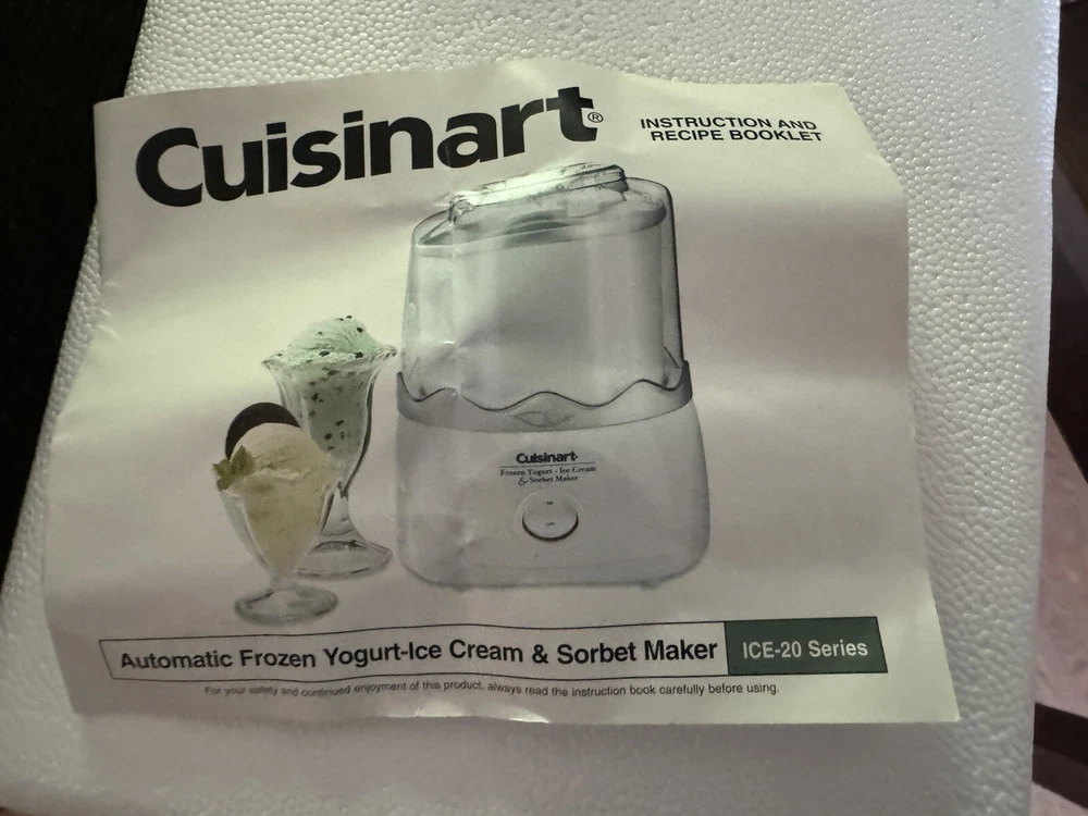 Cuisinart Automatic 1-1/2 Quart Ice Cream Frozen Yogurt Sorbet Maker ICE-20 EUC This has been used once and is in excellent condition. In addition to ice cream, frozen yogurt and sorbet, this machine can make frozen adult drinks and kids’ slushies. Comes with instructions/recipe booklet but does not have original box. This item has been washed so it will arrive at your home fresh and clean. Sent from a smoke free/pet free home. Enjoy This item shipped weighs 9 pounds, so I've offered you several shipping options so you can choose the best shipping option based on your location. This item ships from the Midwest.