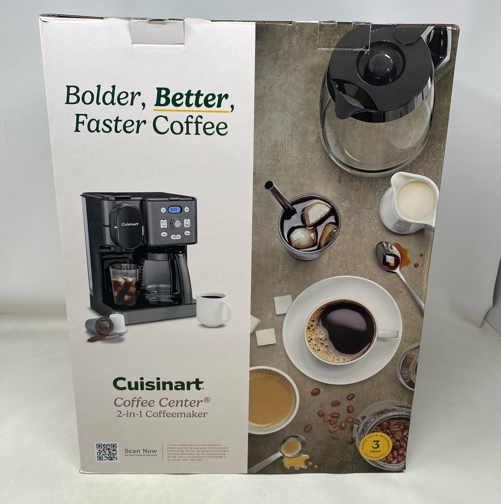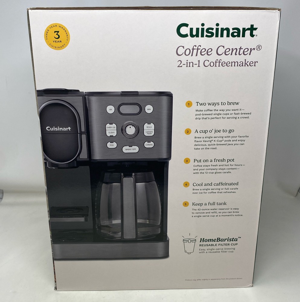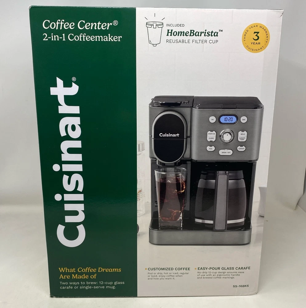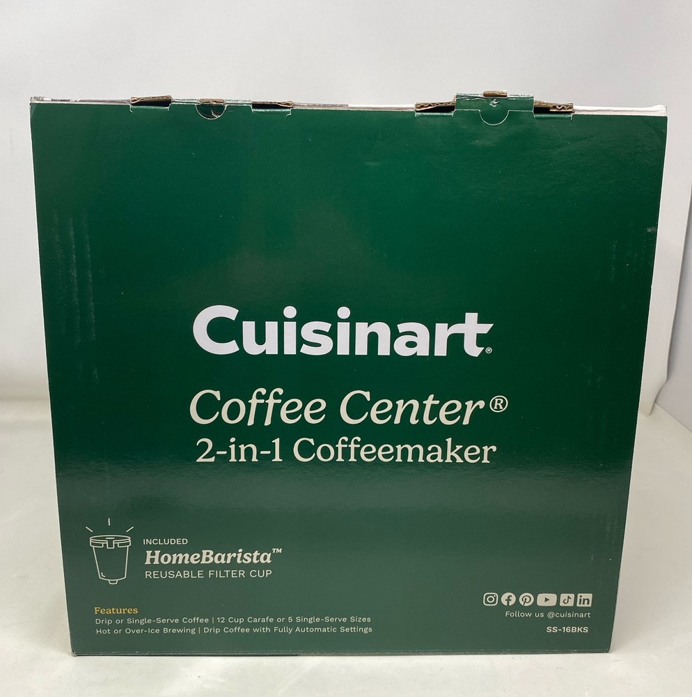 Condition: New - Open Box See photos for full visual reference Model: Cuisinart Coffee Center SS-16BKS 2-in-1 Coffee Maker, Black Stainless, 12-Cup Glass Carafe + Single-Serve At Unturned, we were shocked to discover how many perfectly functional returns were being wasted. That's why we made it our mission to offer these e-commerce returns—often overlooked and discarded—at unbeatable prices. We carefully inspect and test all our products to ensure quality and accurately describe their condition. However, if you receive an item that does not match the description or meet expectations, please reach out, and we will make it right!
