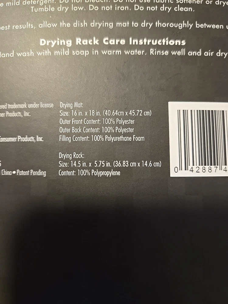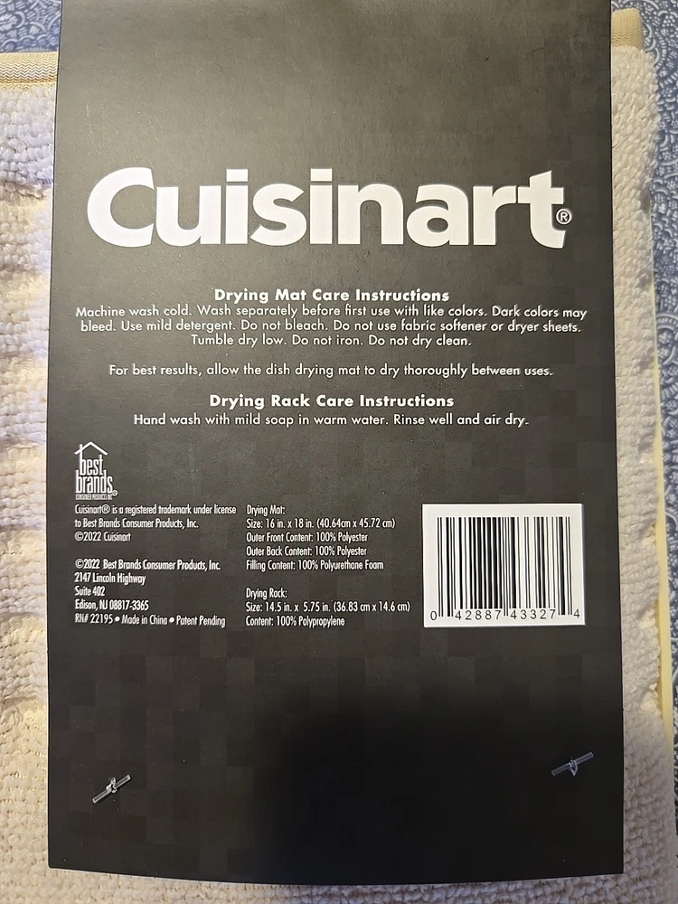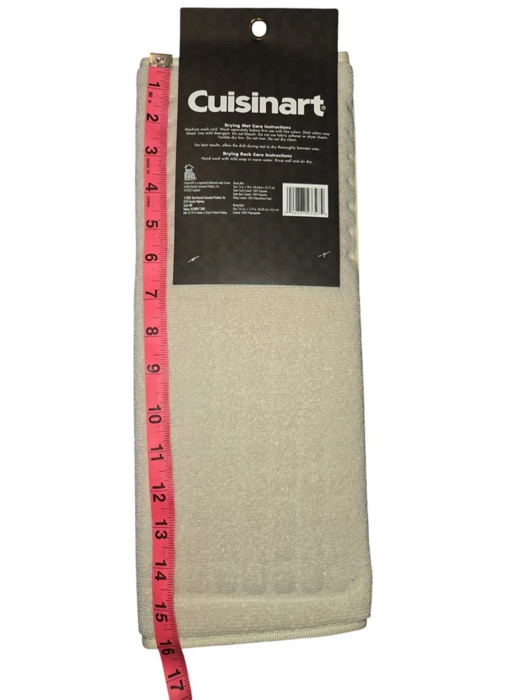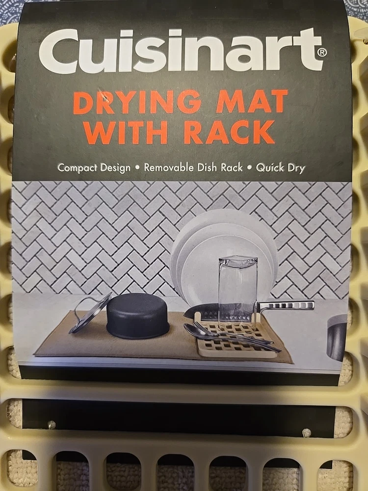Type: Dish Drying Mat Features: Compact Design, Removable Dish Rack, Quick Dry Number of Items in Set: 2 Set Includes: Drying Mat, Drying Rack Color: Beige Brand: Cuisinart Material: 100% Polyester, Polyurethane