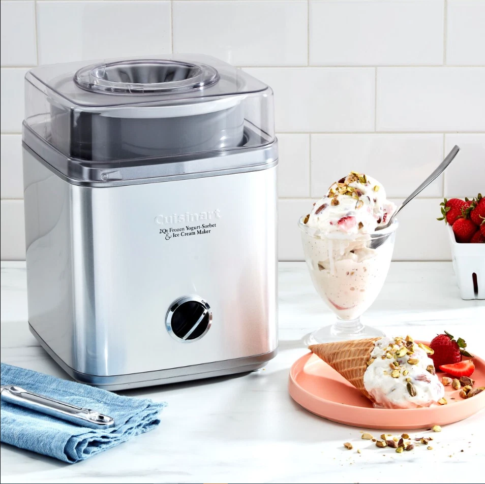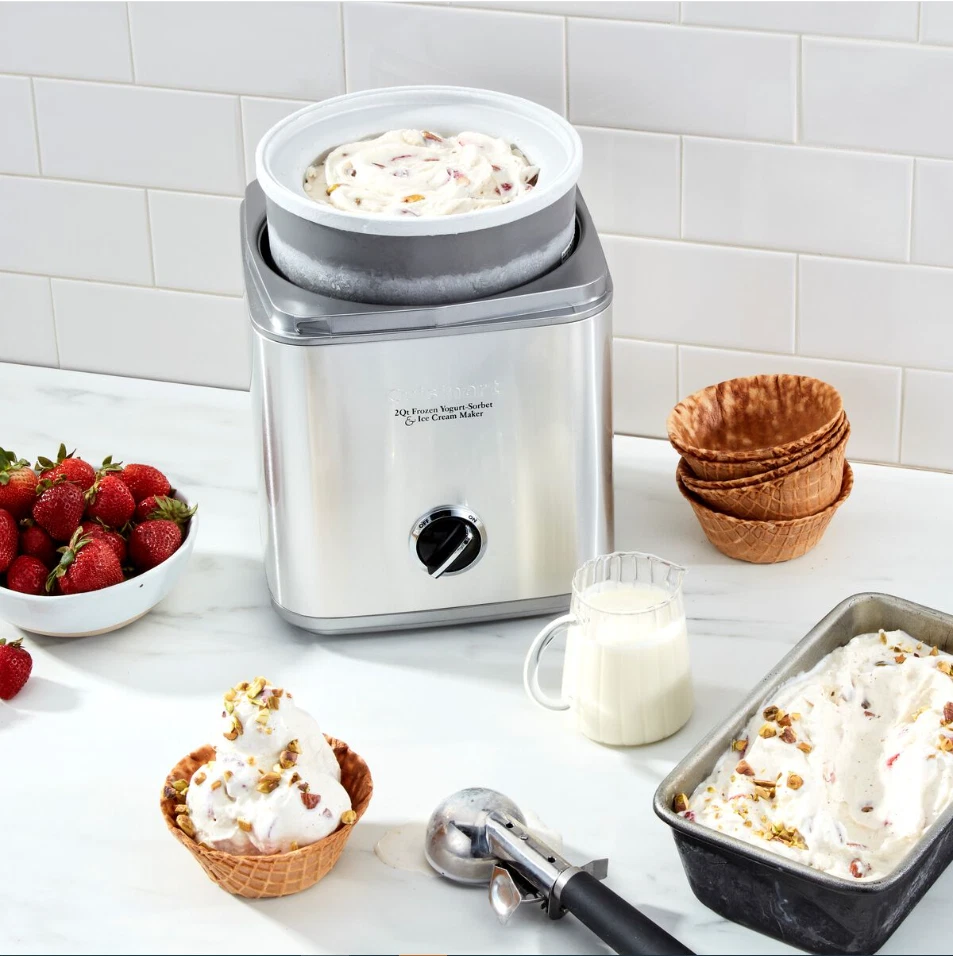 Indulge in the ultimate frozen treat with the Cuisinart Pure Indulgence 2 Quart Frozen Yogurt-Sorbet & Ice Cream Maker ICE30BC. This electric appliance is made of stainless steel and comes in a brushed finish. It has a 2 qt capacity and makes frozen yogurt, sorbet, and ice cream in just 21-30 minutes. The Cuisinart Pure Indulgence 2 Quart Frozen Yogurt-Sorbet & Ice Cream Maker ICE30BC is portable and features a 360° swivel base, clear plastic lid, and a display. It is BPA-free, easy to clean, and comes with a removable 2 quart freezer bowl and base. This unit is perfect for any kitchen and is a must-have for any ice cream and frozen yogurt lover.