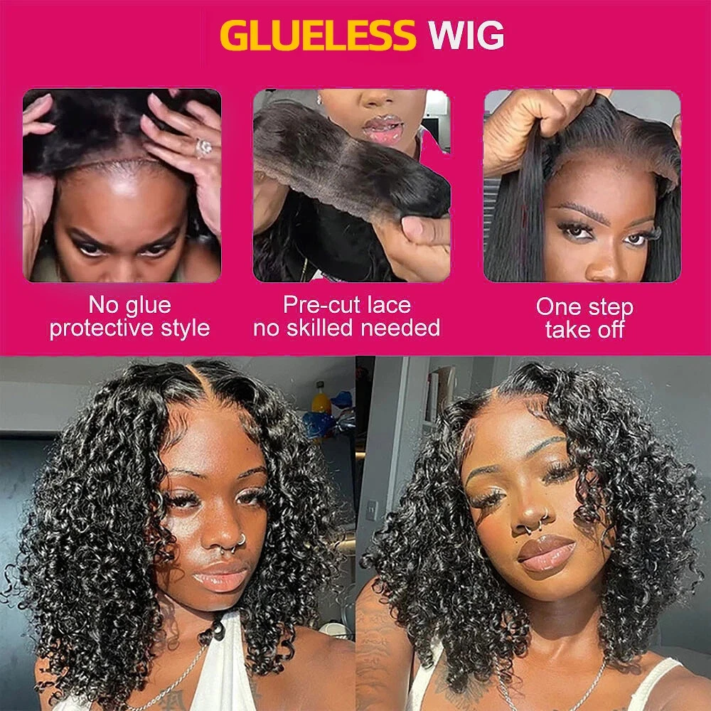 $ 75.9Curly Lace Front Wig Pre Plucked Human Hair Glueless Short Bob