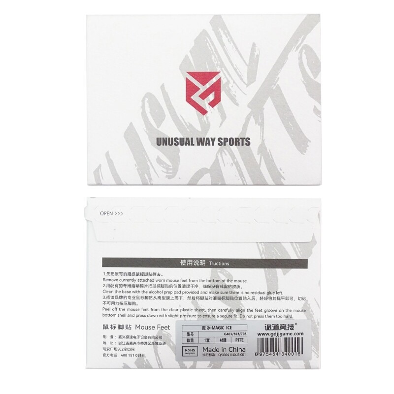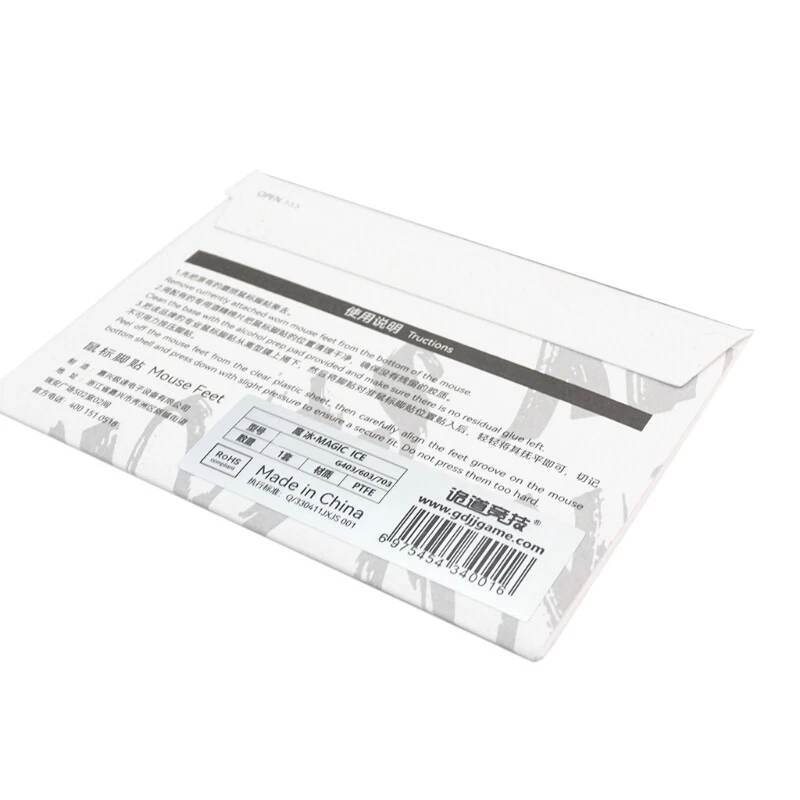 Features: and high All the useless scraps skates are pre-removed for easier use. Reduces the friction between the and pad.Provides a smoother gliding Strictly designed according to real mouses,after consider the s durability and accuracy carefully,the shape, the thickness has been adjusted for every model. The material of the product adds lubricating on the base of PTFE. Achieve precise and comfortable on different materials pads such as cloth or nylon. The product not only won't scratch pad, but also makes the movement of the smoother and more stable. Specifications: for G403 603 703 PTFE Quantity: 1Set/Pack Package Includes: 1Set x ICE Feet note: This product is a replacement feet. After removing foot sticker, the bottom for shell by the cotton which is attached in the package, and then paste the new feet on. After removing the transparent protective film on the feet, carefully the feet on the bottom for shell, then apply slight pressure to fit the foot. Do not repeatedly and peel off the foot stickers.