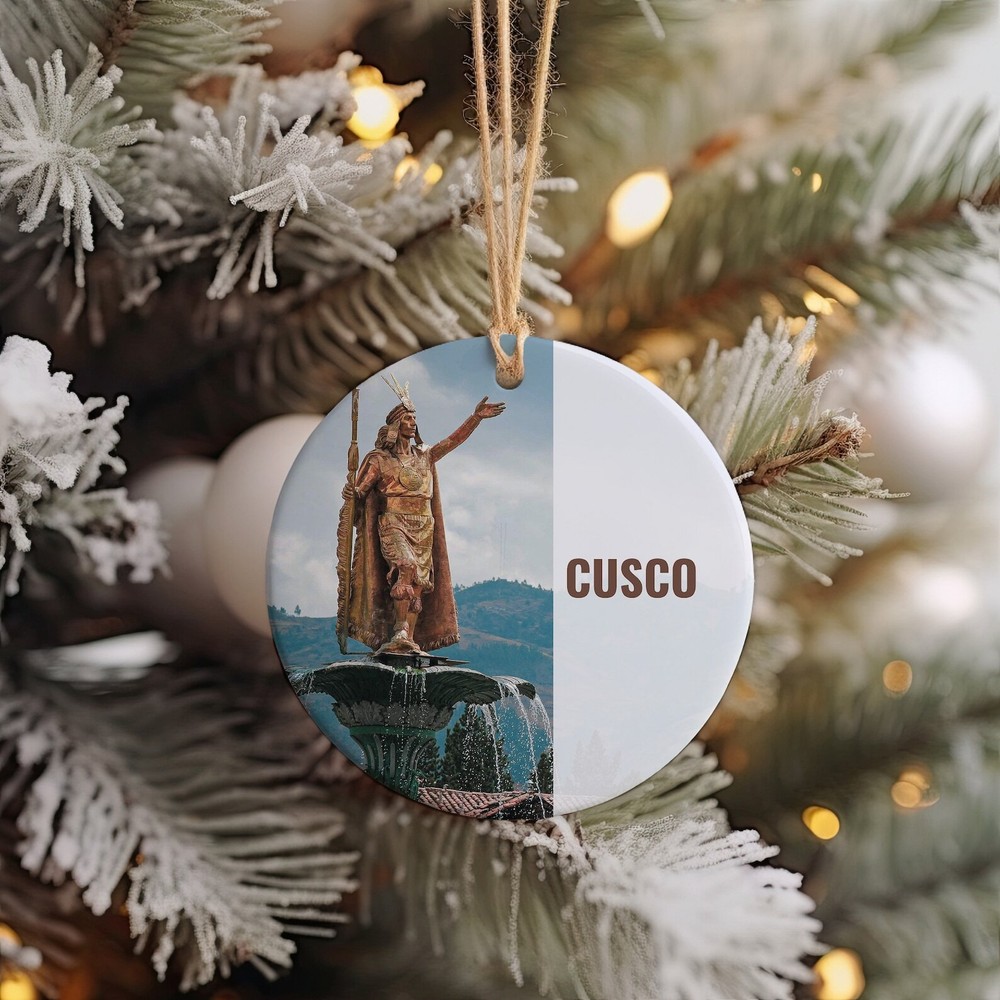 Cusco Ornament Christmas Ornament Cusco Gift Christmas Gift Cusco Christmas Cusco Cusco Travel Christmas Travel Christmas Decor Material: Ceramic Color: White Shapes: Circle, star, heart and oval Can be printed on both sides Imprint full-color artwork, photos, or logos Hole for hanging string and hanging string included Printed in the USA
