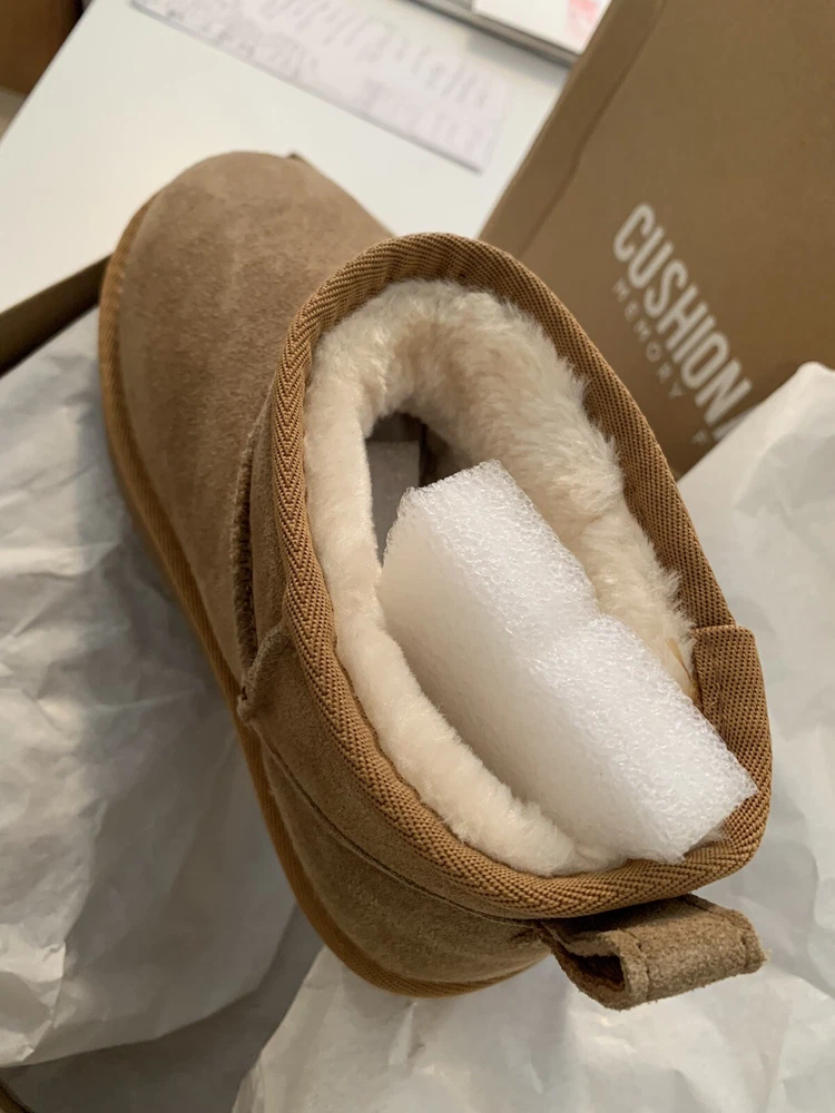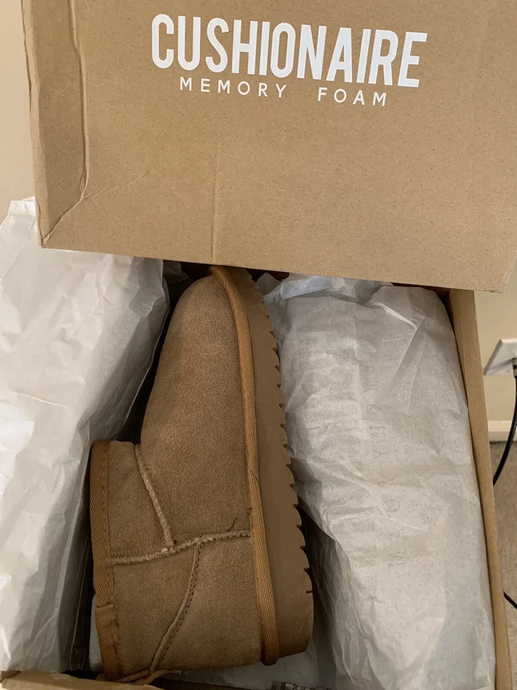 Slip into these SUPER cute and extremely comfortable boots. These boots feature faux fur lining and memory foam insoles. Light weight and durable. Water resistant, has finger loop to help pull on the booties. You will like the comfort, warmth, & value of these boots. The outside material feel genuinely good. Inside has a soft faux Sherpa, and the memory form provides HEAVENLY cushioning.