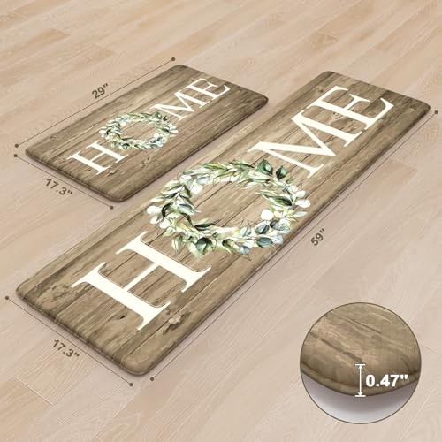 Return Policy Fast Delivery Trusted seller Kitchen Mats Cushioned Anti Fatigue, Farmhouse Kitchen Rugs, Kitchen mats for Floor 2 Piece, Comfort Padded Kitchen Floor Mats for Sink, Laundry, Office, Desk Khaki 17"x59"+17"x29" Product Description Anti-fatigue Kitchen Mats:Cushioned kitchen mats for floor are constructed with 0.47 inch (12 mm) thick, and long-lasting memory foam center provides the comfort for your feet, back and legs,which can support you while cooking 2PC Kitchen Rugs:The kitchen mats contain 2 rectangular rugs (17 x 59 inches and 17 x 29 inches), 2 Pcs kitchen mats may be used separately or in combination to meet different needs.The mats are made of premium materials, which are friendly to your kids and pets Anti-Slip Standing Mats:Equipped with a non slip rubber bottom so that the mats stay in place both on hard or carpet floors.The beveled edges of the kitchen mats help prevent tripping,fully protect you and your family's safety.Tip:Should be placed on dry surface during use Waterproof & Easy to Clean:The anti-fatigue mats are constructed with heavy-duty PVC outer lining, which is waterproof, oilproof, and stain-resistant. Just wipe the mats down with a damp cloth or use a hand-held vacuum to clean them,saving your time and energy Versatile: provide Home Letter Design kitchen rug sets to match your home decor.Soft thick foam provides ample support for standing in kitchen sink,laundry room, office,bathroom,dinning room,or any other high-traffic area Shipping Returns Payment Shipping Shipping is FREE to all addresses other than APO/PO boxes in the lower 48 states. All our stock ships from US-based warehouses. Shipped via USPS or UPS (depending on location and package weight) Unless stated otherwise, all orders will ship within 24-72 hours of your payment being processed. Check our feedback to see the great reviews of FAST shipping we offer. Returns Seller does not accept returns Payment We currently accept payment via eBay managed payments only. Once payment is cleared, we will dispatch your shipment within 1-3 business days. Please refer to the "Shipping" tab for more information regarding shipping speed to your destination.