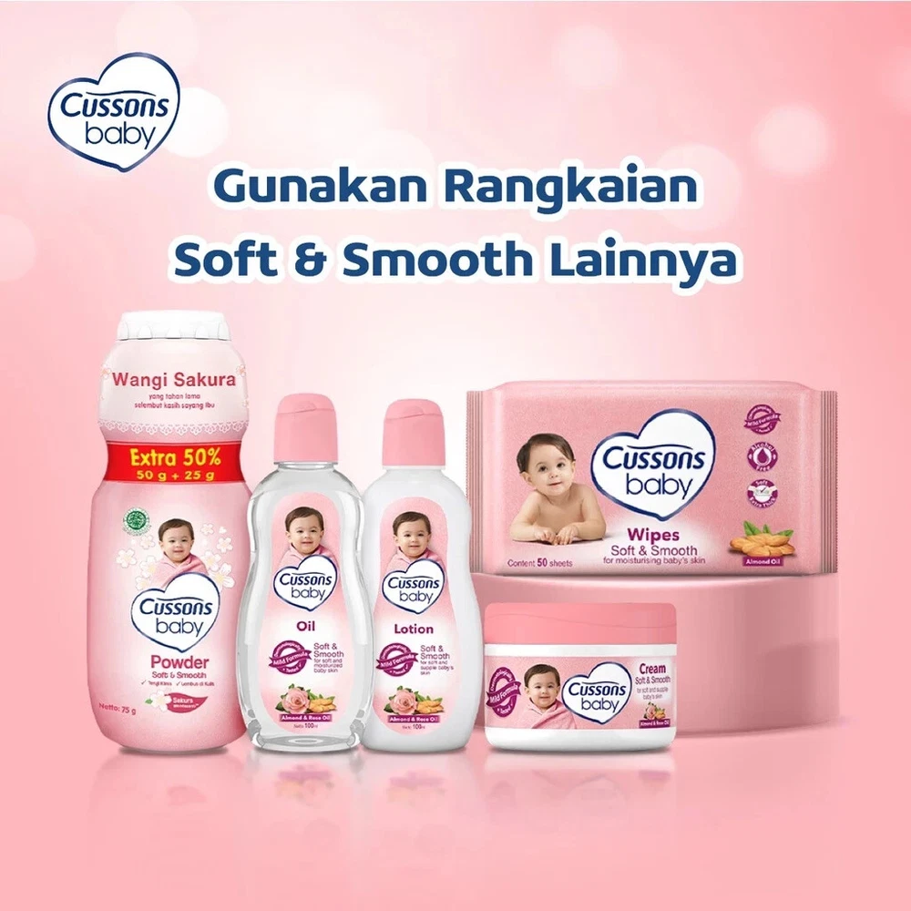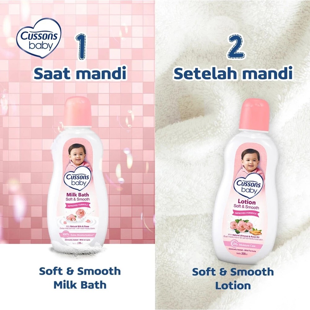 Cussons Baby Lotion Soft & Smooth - Baby Lotion 200ml -Cussons Baby baby lotion has been tested by dermatologists so it is safe for baby's skin -Contains a combination of Almond Oil and Rose Oil that nourishes baby's skin and provides a comfortable fragrance -Cussons Baby baby lotion is easily absorbed and does not cause a sticky feeling -Has a distinctive and soft baby scent that makes babies more adorable -Use Cussons Baby baby lotion after bathing to keep skin healthy and well-maintained