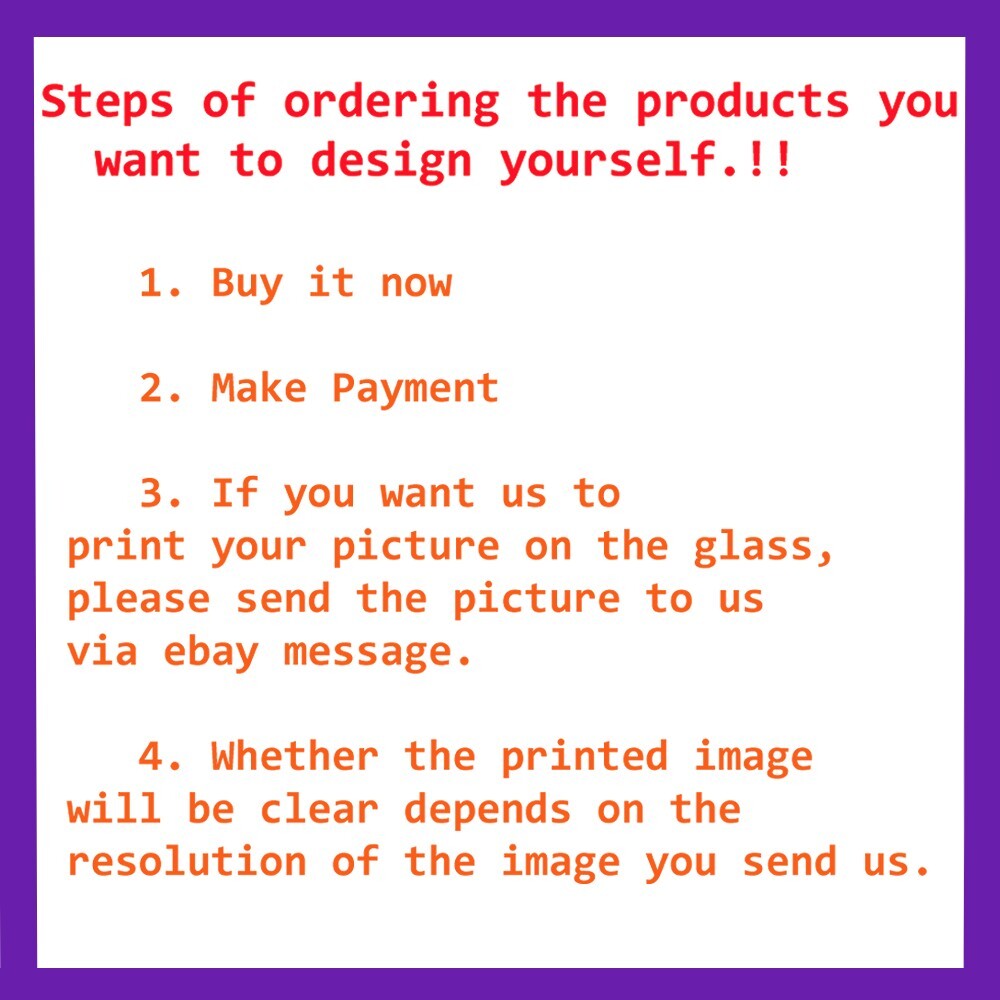 Steps of ordering the products you want to design yourself.!! 1. Buy it now 2. Make Payment 3. If you want us to print your picture on the glass, please send the picture to us via ebay message. 4. Whether the printed image will be clear depends on the resolution of the image you send us. You can buy it as a gift for different festivals to give to the people you care about, such as father, mother, boyfriend, girlfriend, friends and others. It can also be given as a birthday present, Valentine's Day gift, Father's Day gift, Mother's Day, including all your occasions. Quality of the production process. In production we use modern technology and high quality printing techniques making the images and colors printed on the glass cup come out beautiful and pleasant to use. Quality control Each glass cup we produce. We have very good production quality control and inspection. So that you get the best quality products. Packaging control Mugs are shipped in polystyrene boxes that are easy to use, with the two-part pack slotting together to provide all-round secure protection, including a slot for the handle. The packaging has been specifically designed to keep the mug intact during transit. .: White ceramic .: 11 oz (0.33 l) .: Rounded corners .: C-handle .: Lead and BPA-free 11oz Height, in 3.74 Diameter, in 3.15