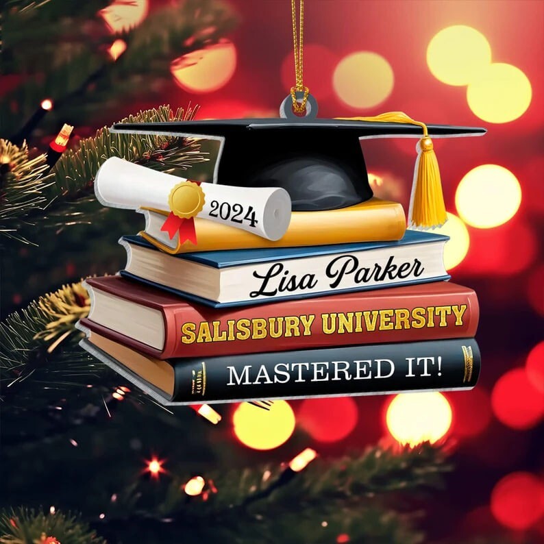 Personalized Graduation Cap With Books Ornament Class of 2025, 2D Flat Acrylic Shape Acrylic Ornament Best Material: The acrylic one is made from acrylic plexiglass. Perfect Quality and Durability: The artwork of acrylic ornament is made from transparent acrylic. Home decoration: You can hang it on your rearview mirror as a car decoration, auto decoration, vehicle accessory, automobile accessory, or display it as home decoration wherever you like. This handy ornament is the perfect size to display in your vehicle, on your bag, or in your living room, bedroom, or workroom. Come with a hole and glitter wire attached to the strap. Gift of love: A perfect idea if you are finding a birthday gift, a housewarming gift, a festival gift, a Mother’s Day/ Father’s Day/ Christmas gift for your family or friends. SPECIFICATION Processing Time: 3 – 5 working days average after payment. Shipping Time: 7 – 15 working days average (US) Packaging: 1x Ornament