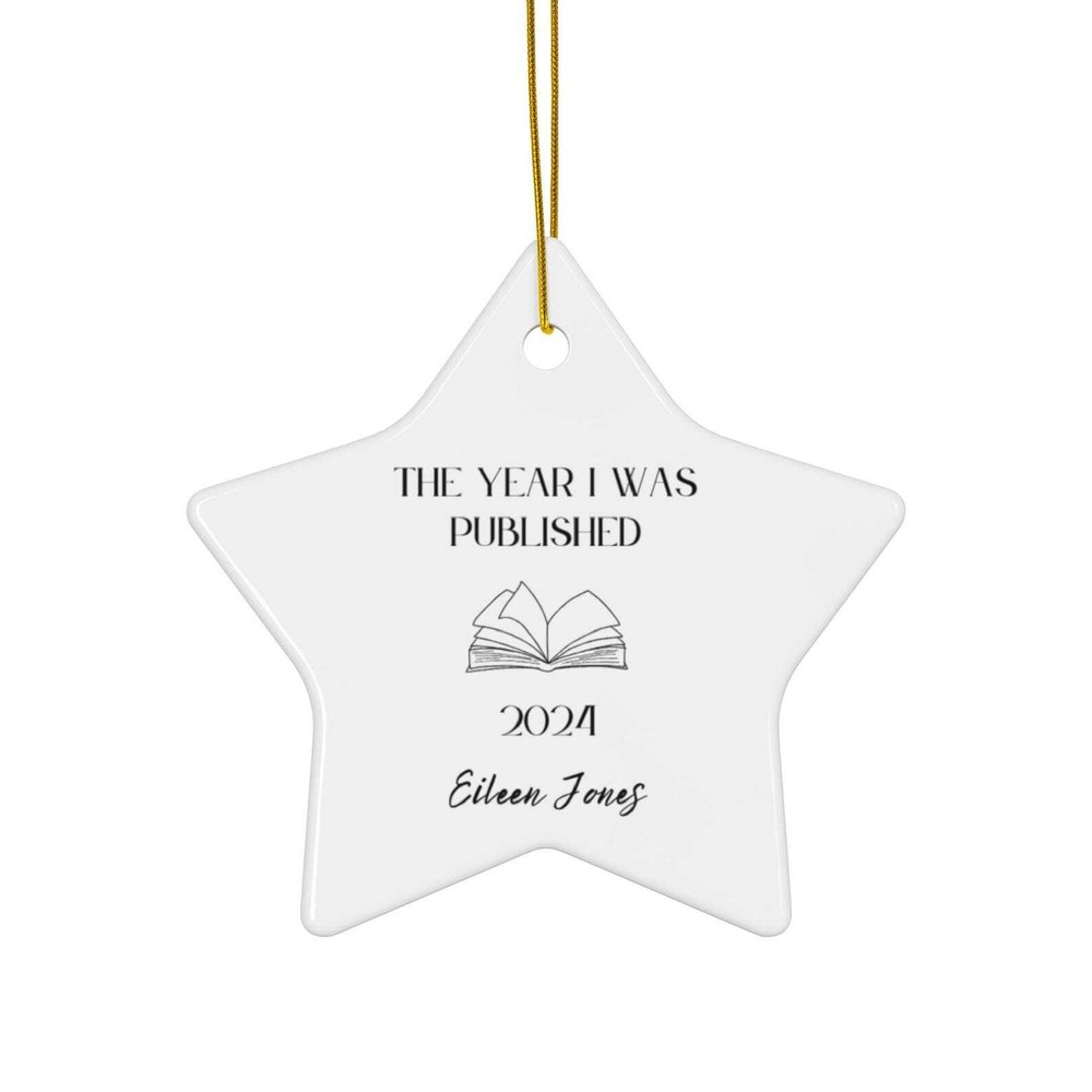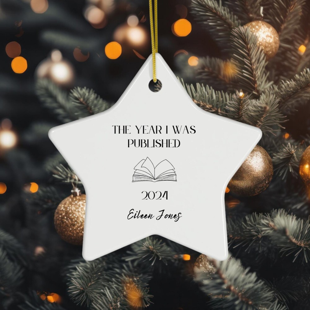 Personalized Author Ornament Custom The Year I Was Published Christmas Keepsake Published Author Gift New Writer Gift Writing A Novel Gifts Material: Ceramic Color: White Shapes: Circle, star, heart and oval Can be printed on both sides Imprint full-color artwork, photos, or logos Hole for hanging string and hanging string included Printed in the USA