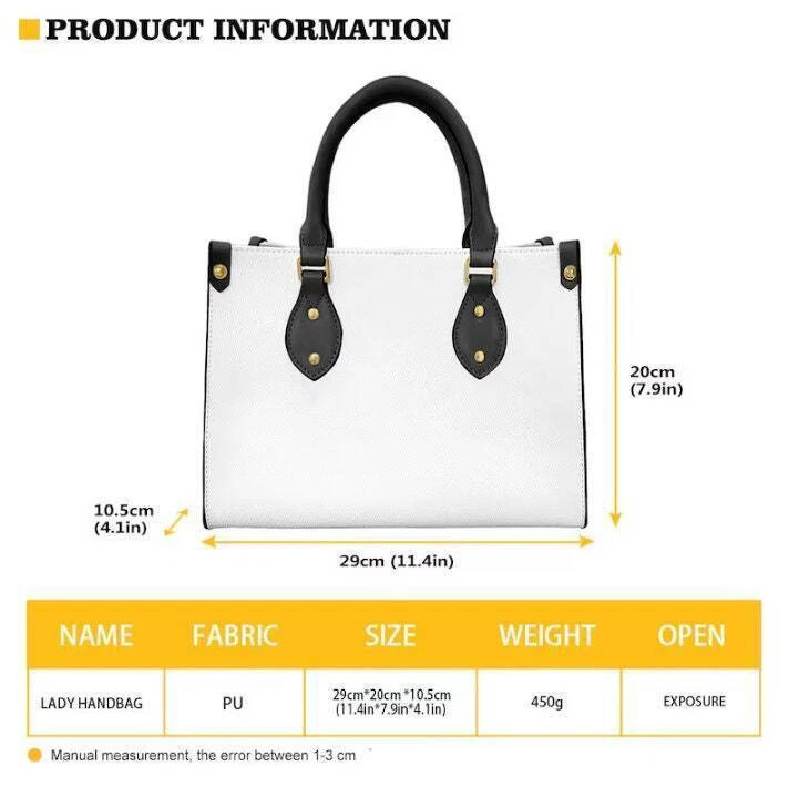 Women 3D Small Handbags Manufactured with premium water-resistant PU leather. Size: S M L Perfect for dating, shopping, working, traveling, vocation, party and other occasions. Well made of high quality metal buckle. Detailed stitching with smoothly metal buckle. Handbags have 1 main compartment, and one side pocket - you can use it for an extra pocket. This handbag can hold your iPad, wallet, makeup, phone, little water bottle, perfumes, gloves, and other everyday items and keep them organized. 2 option Handles and Strap: WHITE BLACK - Woman Purse: Main material: PU leather. Woman purses are mini-wallet used for casual occasions. They usually held it in events or even in daily life, but it,s also acceptable for men to wear them. *** We can design the picture according to your choice, please send the picture to me *** Special Note: As a result of the production batch, the light intensity photography effect will have a color difference. --------------------------------------------------------------------- DELIVERY: Items are produced after we get your orders. Time of production: 5 - 7 business days. Production and delivery time depend on product type and delivery location. Please refer to the estimated time under each listing. For details, let us know the date you would like to receive the item Every order comes with a tracking number that will automatically be sent to you before the package is sent out. RETURNS & EXCHANGES: We DO NOT have a return policy but please contact us within 10 days from the day of delivery if there is a problem with your order. We'll gladly process your order if the product you received is defective from the manufacturer or does not match what is listed in the listing or what you have purchased. We don't accept returns or exchanges with orders from buyer's mistakes. CANCELATION: We accept order cancellation within 24 hours after the order is successfully paid. If you want to cancel while the item has been manufactured, please accept the deposit fee. REVIEW: Any feedback is welcome as we would like to know what you think in order to make it better. If packages come up to your expectations, we look forward to receiving a 5-star rating from you. Let us know specifically if the product has a problem, and we will take care of it for you, please do not rush to leave a one-star rating. We always try to meet your requests. We are committed to bringing you the best quality products, if you have any questions about the products, please contact us ! Thank you for visiting our store. Have a nice shopping time!