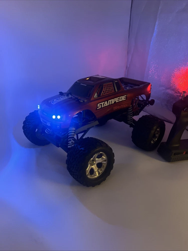 Custom Body Paint Traxxas Stamped 2wd With Lights Lipo Battery Esc XL5. The model remains original, a new case has been made, light has been added, and the case protection has been strengthened. The set is ready, battery and remote control included. Good condition, tested and working.