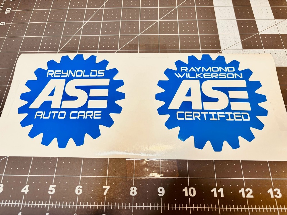 Personalized Automotive Repair Shop vinyl decal available in multiple sizes and the traditional blue & white color scheme. These decals are die-cut, meaning there is no background (unless you opt for the white background). The decals are computer cut, transfer tape is applied and detailed application instructions are included. It is 100% vinyl. No printing. If you choose no background, the white letters will be in white vinyl on top of the blue.(Much better grease/oil/weather/sun resistance than printed decals.) Quantity discounts & ALWAYS FAST, FREE shipping. Stay tuned to your ebay messages after placing your order in case I have design questions. If you have questions, please don't hesitate to send me a message. I'm very friendly and I want to make the decal exactly as you want it. Click on the video to watch my husband, grubby hands and all (we're just avg blue collar people) show how to properly peel and apply a decal. BUY 2 & GET A 3rd of the same size and color FREE! I have the shop version in another listing in my eBay store. FAQ: *****My vinyl decals are exterior grade and last! Application surface must be CLEAN, SMOOTH & NON-POROUS. *****Like the design, but not the color choices? Just ask! I stock a MASSIVE amount of vinyl in hundreds of different colors. *****Have a critical dimension and need an exact size? No problem! Just ask! *****Want it bigger, such as a windshield banner? Just ask! I do custom work & custom listings ALL the time for folks. ***** Want this design (or any other) on a shirt, coffee mug, tumbler,license plate or sign? Just ask! *****Smaller decals ship in a rigid cardboard envelope for protection and larger decals are sandwiched in cardboard and shipped in bubble mailers. *****If for any reason you have a problem with our transaction, please contact me before leaving feedback and I will do my very best to make it right.