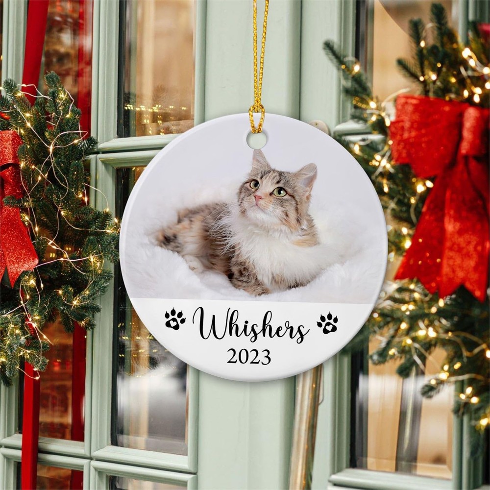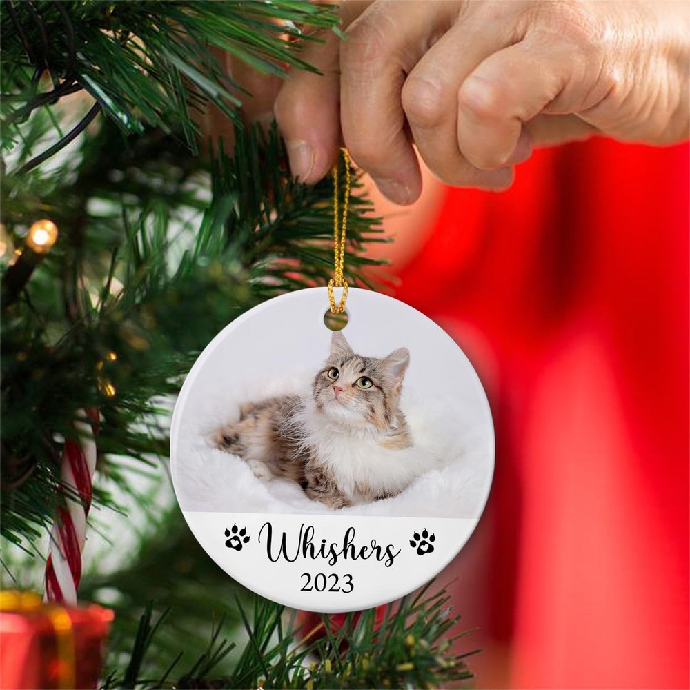 Personalized Cat Photo Christmas Ornament 2025, Picture Cat's First Christmas Ornament, Custom Name & Photo Cat Ornament For Cat Lovers Cat Dad Cat Mom, Photo Pet Dog Cat 1St Xmas Ceramic Ornament ღ Unique Home and Decor Present for Christmas or Holidays Our Christmas ornament is crafted from ceramic materials. Dye-sublimation printing, can be printed on both sides. Each ornament is equipped with a festive gold cord for easy hanging on the Christmas tree, doors, windows, walls, wherever you want to decorate. ღ Are You Looking for A Memorable Gift? This personalized Ceramic Ornament is just what you are looking for! Our Christmas ornament makes a lovely unique gift idea for men, women, dad, mom, baby, kids, boys, girls, husband, wife, married, newlyweds, couple, family member, friends... it has a commemorative significance. This beautiful ornament is not only for Christmas, but also as gifts for memorial, remembrance, engagements, weddings, anniversaries or any other memorable day. ☛ If you have any question with your order, please feel free to contact us at any time. Your satisfaction is our priority. [HOUSE WARMING DECORATION GIFTS]: Makes a great keepsake gift for Men, Women, Dad, Mom, Kids, Baby, Boy, Girl, Husband, Wife, Couples, Married, Newlyweds, Family Member, Friends...This Personalized Xmas Ornament will be an ideal way to memorize the special day and create warm and sweet Christmas atmosphere. [HOW TO CUSTOMIZE]: Add that extra special touch to your Xmas tree this year with our Cat Christmas Ornament. Click the “Customize Now” button, upload your photo, name & year. Let's get started! [HIGH QUALITY]: Made of ceramic, vibrantly printed from edge-to-edge via Sublimation. Can be printed on both sides. [ORNAMENT SIZE]: Measures 2.9" in diameter, gold hanging cord included, suitable for hanging on Christmas trees, doors, windows, walls and anywhere you want to decorate. [SATISFACTION GUARANTEE]: If you have any question with your order, please feel free to contact us at any time. We will response you as soon as possible. Your satisfaction is our ultimate goal.