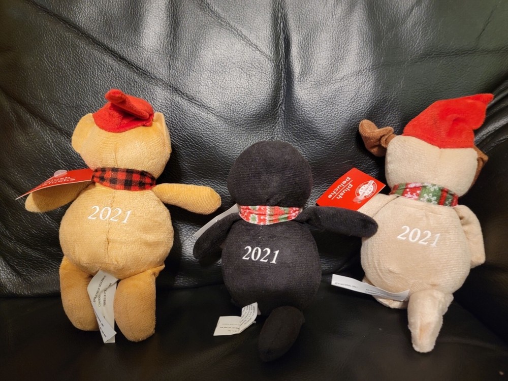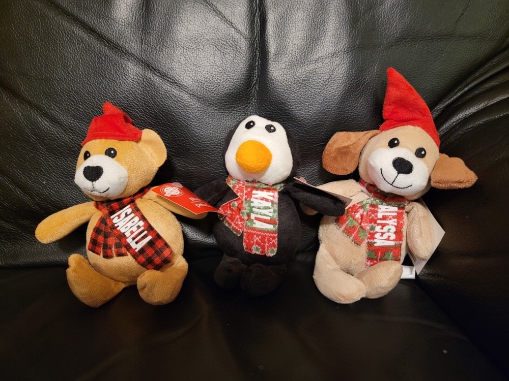 For sale is 1 personalized 9” plush stuffed animal with name on scarf and Year 2021 on the back. Santa will have name on the front above his belt. All other plushes will have name on the scarf. When placing order, please order by number. I have the numbers on the individual pictures. 1: Moose 2: Snowman with blue hat 3: Bear 4: Dog 5: Snowman with black hat 6: Santa 7: Penguin Also, when placing order, please let us know in the notes area what name you want on the plush. We ship out within 3 business days (Mon-Fri)