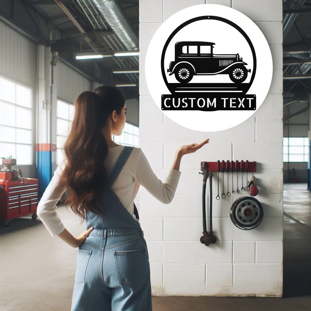Product Description Custom Classic Car Metal Art Sign Personalized Home Garage Wall Decor Gift Rev up your decor with this Custom Classic Car Metal Art Sign! Made from high-quality 16 gauge metal, this personalized sign is perfect for car enthusiasts and adds a stylish touch to any home or garage. With a durable powder coating, it is dust, weather, and water-resistant, making it ideal for both indoor and outdoor use. This custom metal sign is a fantastic gift for Christmas, birthdays, or any special occasion. Personalize it with your name or favorite car model for a unique piece that showcases your passion for classic cars. Whether you hang it in your garage, man cave, or office, this sign will surely impress. Key Features: Customizable Design: Personalize with your name or favorite car model for a unique touch. Durable Material: Made from sturdy 16 gauge metal for long-lasting use. Weather Resistant: Powder-coated finish protects against dust, moisture, and outdoor elements. Versatile Decor: Ideal for indoor or outdoor spaces, enhancing any environment. Great Gift Idea: A perfect present for Christmas, birthdays, or special occasions for car lovers. Stylish Design: Features a classic car motif that adds character to any space. Bring a classic vibe to your home decor with this Custom Classic Car Metal Art Sign! Service and Color Choice Our metal signs are designed to be personalized just for you, making them the perfect addition to any space! The default color for our signs is Black , but we also offer a variety of beautiful options including Copper, Gold, White, and Silver . After placing your order, simply contact us with your preferred color choice, and we'll ensure your sign is exactly how you envision it. Let’s create something special together!