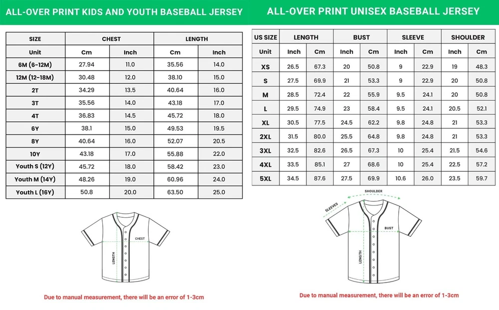 ⭐PRODUCT DETAILS: * Material: 95% Polyester + 5% Spandex * Please check our size chart as above carefully before choosing your size. * Colors may vary slightly from the image due to screen displays and lighting, but the difference is usually minor. * Due to manual measurement, there will be an error of 1-3cm. • Printing Technique: Utilizing the latest DTG (Direct-to-Garment) printing technology. ⭐ SHIPPING: • Processing Time : 2-6 business days • US Shipping Time : 10-15 business days • Shipping carriers: USPS, DHL. • International shipping time: 15-20 business days. ⭐ CARE INSTRUCTION: • Turn clothing inside out • Machine wash cold with mild detergent and like colors • Dry on a low heat setting in the dryer • Do not bleach the printed design • Do not iron directly onto the design ⭐ POLICY: • Please make sure your shipping address is correct prior to place your order. Once your order is in production no changes can be made. • Shipping times are estimates only, we cannot guarantee specific delivery dates. • Please choose the exact size you need. I will not refund or return if the problem is related to the size or style of the shirt. Thank you for visiting my store!