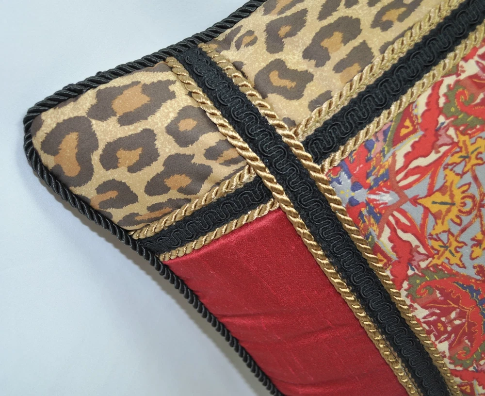 Custom sewn Accent Pillow made with Ralph Lauren Galahad, Dupioni Red Silk & Venetian Leopard Animal Print Fabric 16" x 16" approx. Satin Cording & Gimp trims the pillow. The back is the same Venetian Leopard fabric as the front and has a sham closure for removal of the insert. Insert is Foam. Any extra shipping paid will be refunded to your account. Check our eBay Store for other items that coordinate All items from a smoke & pet free environment .