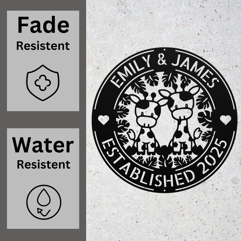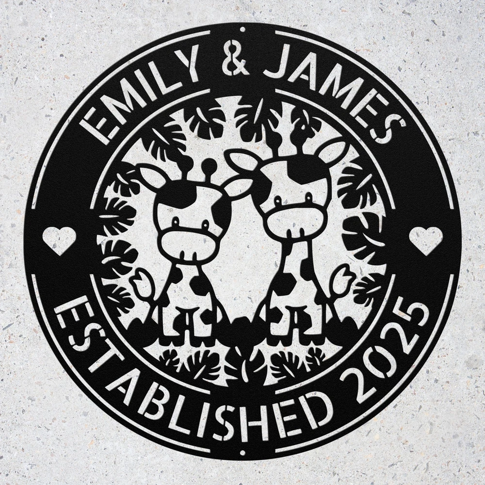 Product Description Custom Couple Giraffes Metal Sign Personalized Safari Animal Wall Decor Gift Home Celebrate love, connection, and the beauty of nature with this Custom Couple Giraffes Metal Sign ! Featuring an elegant pair of giraffes , this personalized metal plaque is a perfect addition to any home, safari-themed nursery, outdoor patio, or wildlife-inspired space . Whether you’re a nature lover, animal enthusiast, or searching for a romantic anniversary gift , this high-quality metal sign is a charming and timeless piece. 🌿 Key Features: ✔ Customizable with Names or a Special Message – Make it uniquely yours! ✔ Premium-Quality Metal – Crafted from durable, weather-resistant aluminum for long-lasting use. ✔ Elegant Giraffe Couple Design – Symbolizing love, unity, and the beauty of the wild. ✔ Fade & Rust-Resistant Finish – Suitable for both indoor & outdoor display. ✔ Perfect for Any Space – Ideal for bedrooms, nurseries, patios, gardens, living rooms, and wildlife-themed spaces . 🎁 A Meaningful & Unique Gift for Couples & Animal Lovers! 🎁 Looking for a heartfelt gift for a wedding, anniversary, housewarming, or Valentine’s Day ? This custom giraffe metal sign makes a thoughtful and romantic present for partners, newlyweds, nature enthusiasts, and safari lovers . 📏 Available Sizes: Select from multiple sizes to fit your space—whether you need a small, intimate piece or a large, eye-catching display . 🔧 Easy to Hang & Display: Designed with pre-drilled holes for effortless mounting on walls, fences, porches, or garden areas . 🏡 Perfect for: Couples & Anniversary Gifts Safari & Wildlife-Themed Home Decor Nurseries & Kids’ Rooms Outdoor Garden & Patio Art Romantic & Symbolic Gifts for Loved Ones Service and Color Choice Our metal signs are designed to be personalized just for you, making them the perfect addition to any space! The default color for our signs is Black , but we also offer a variety of beautiful options including Copper, Gold, White, and Silver . After placing your order, simply contact us with your preferred color choice, and we'll ensure your sign is exactly how you envision it. Let’s create something special together!