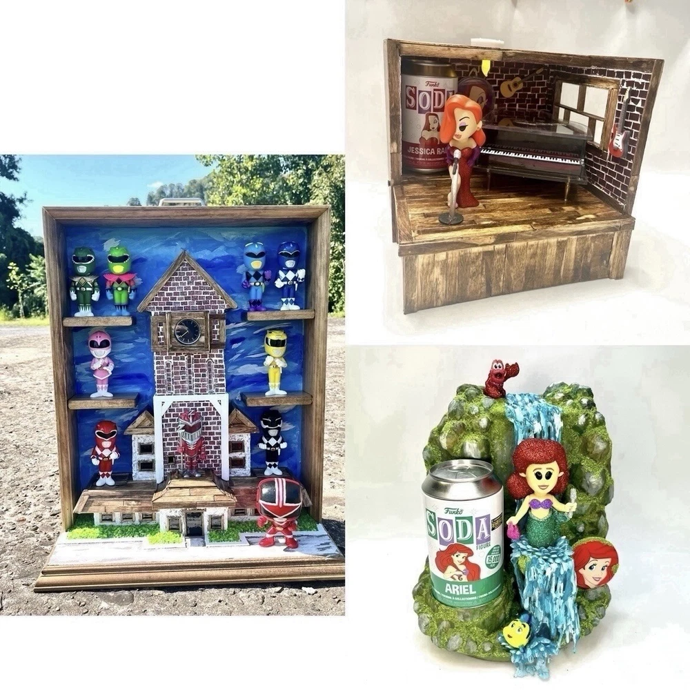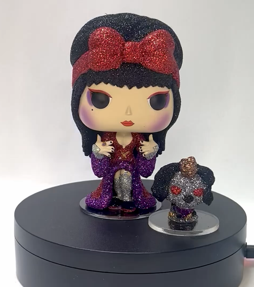 I make glitter and flocked customs. I also do clay work and paint. I also make fully detailed dioramas. We can design something for your favorite figures and I can bring it to life. My glitter customs take time to complete because I seal them so the glitter will not fall off. I do a glue and glitter coat for each color. Then when a color is dry I add liquid glass resin and more glitter. It is a thick and professional coat of glitter that won’t fall off. I add a stand if needed and I do a custom pogs. Please see all pictures posted for every angle. Check out my shop and type in - custom - to see all the work I have available. Shoot me a message if you want me to make something specific for you. Thanks for stopping by and have a good day.