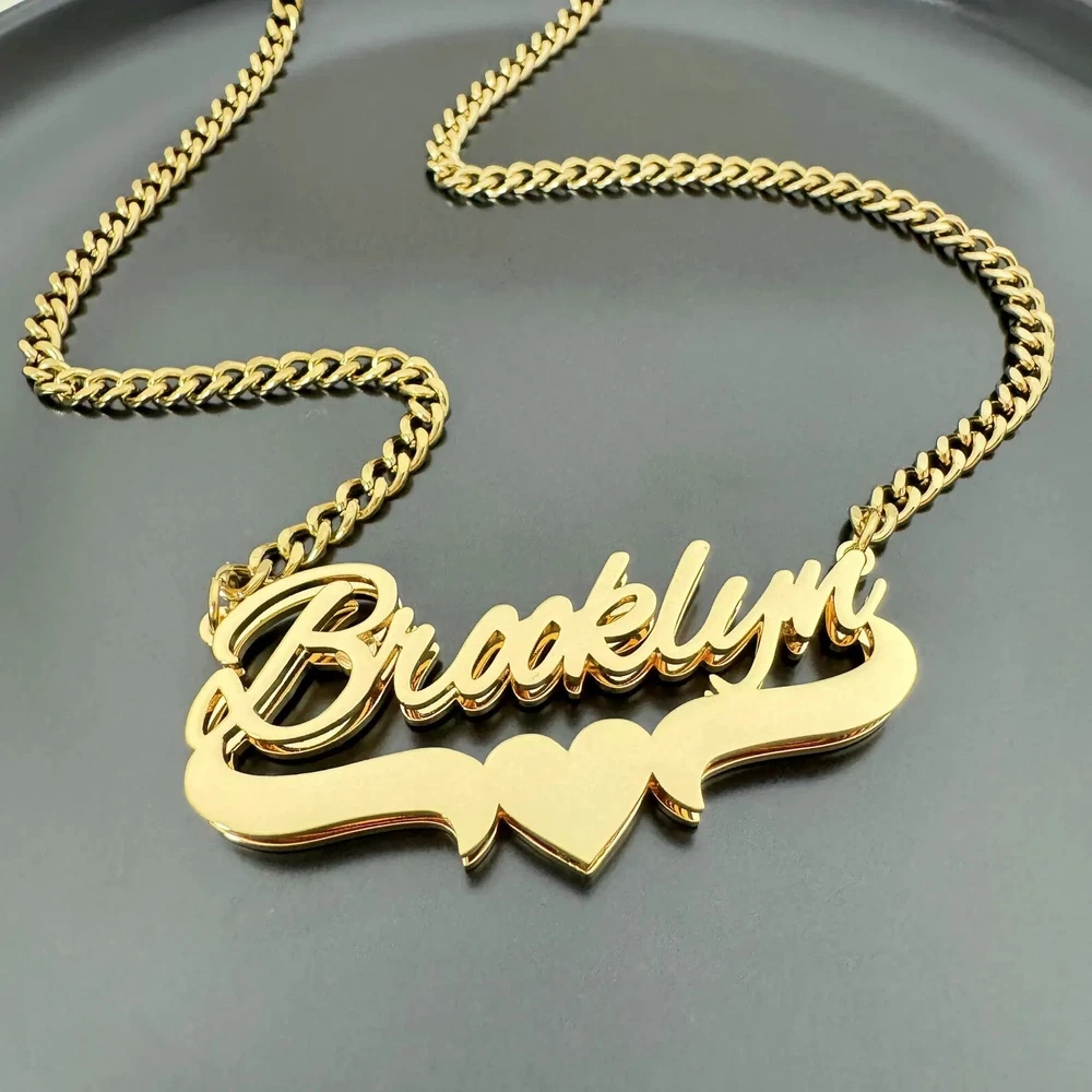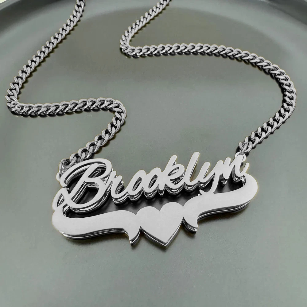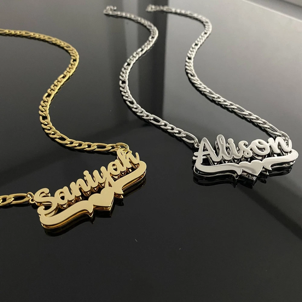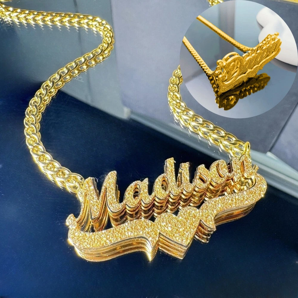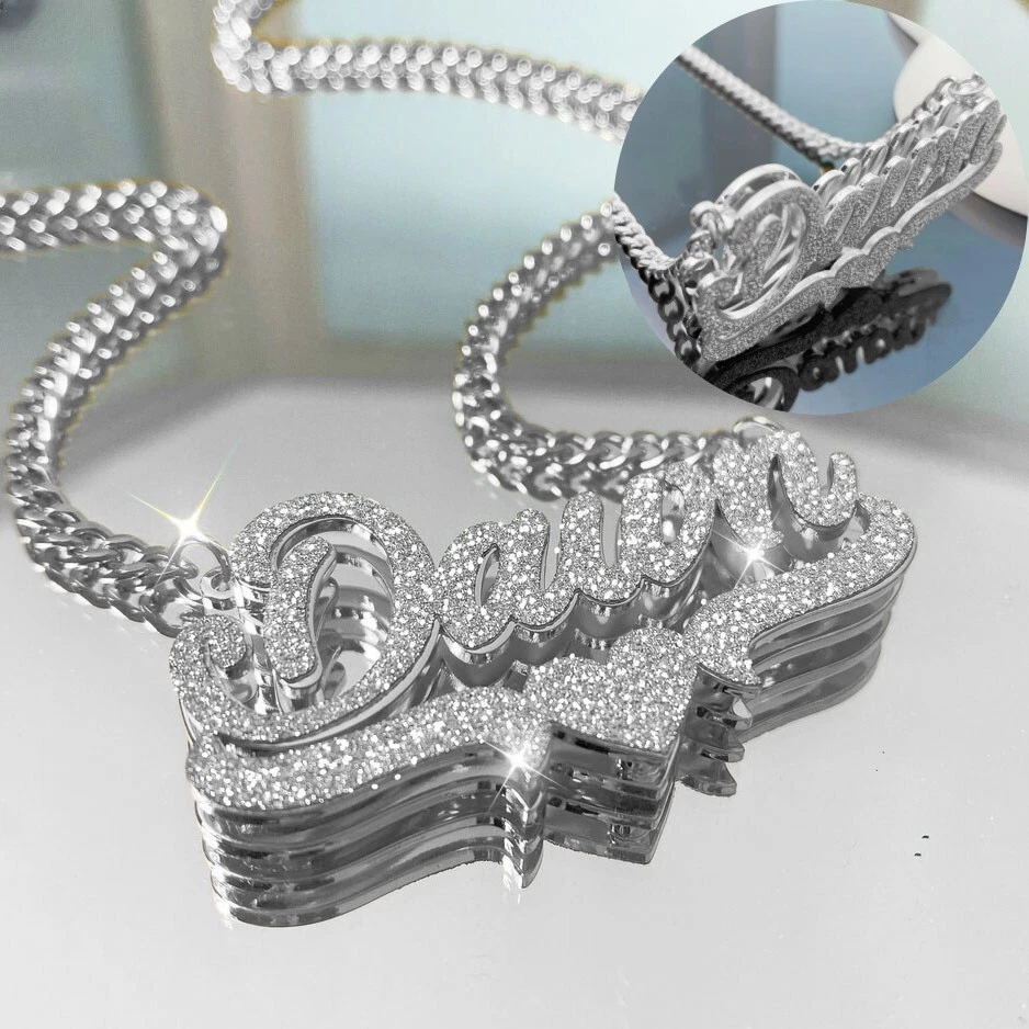 Personalized Double Layered Name Frosted Necklace Custom Stainless Steel Jewelry