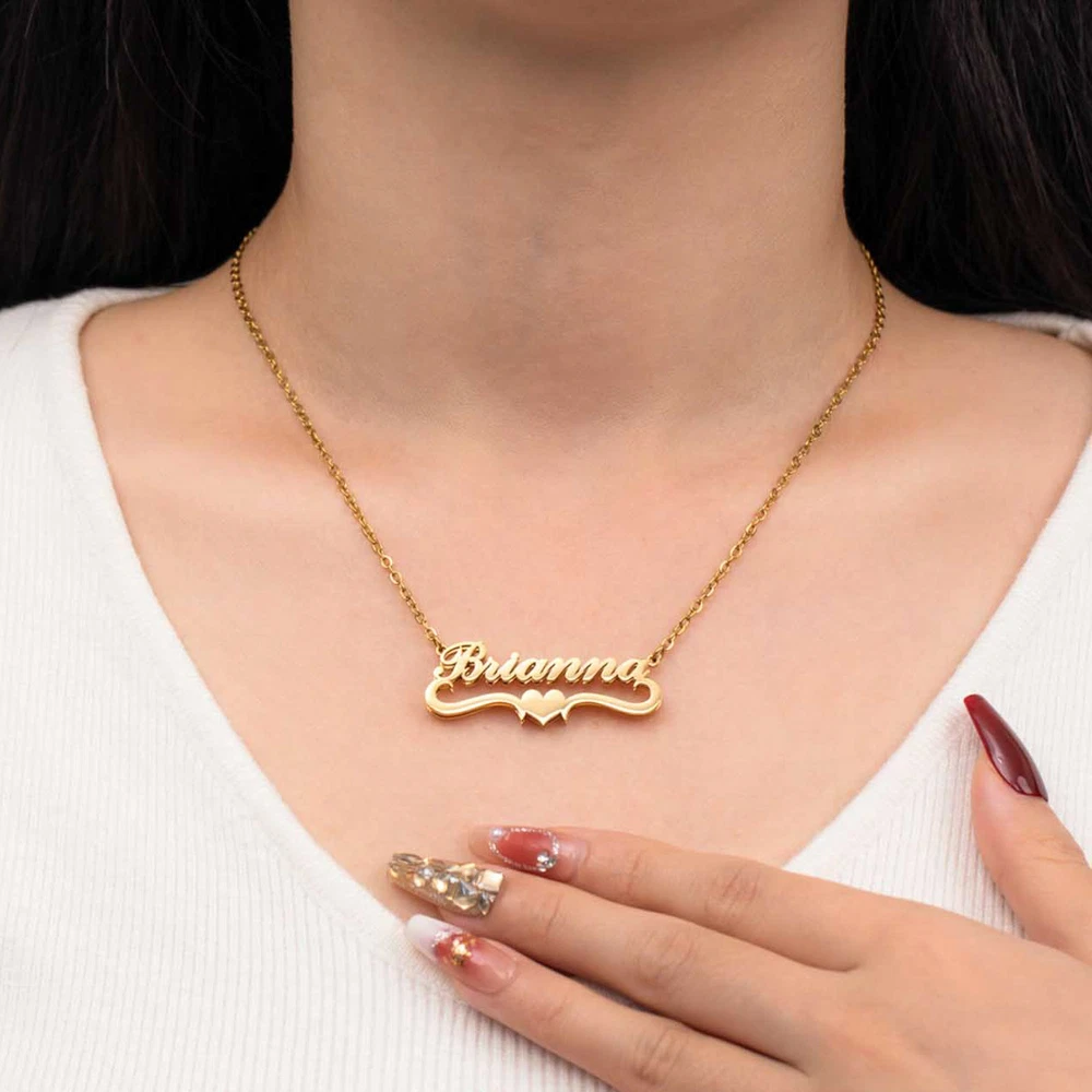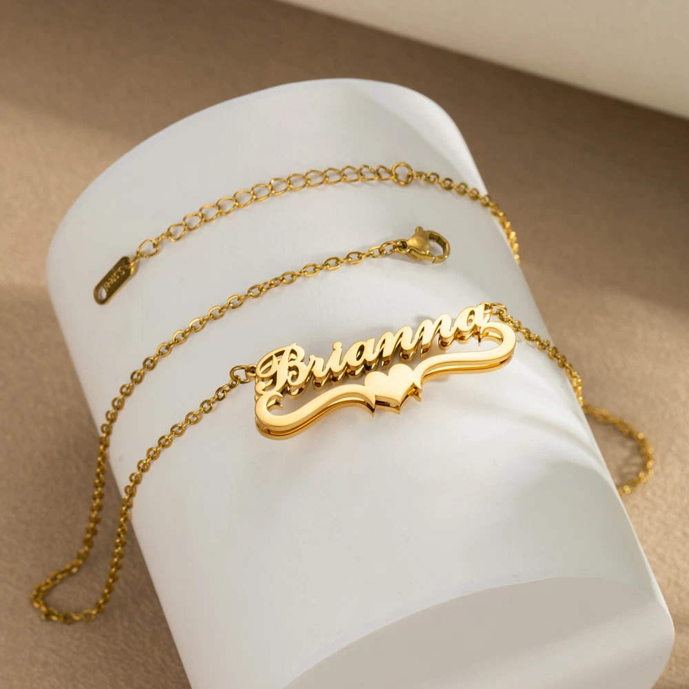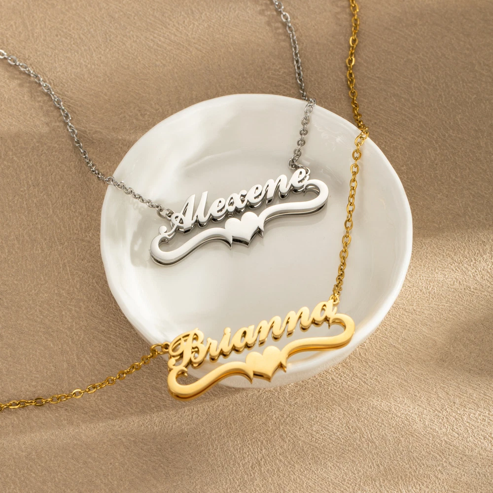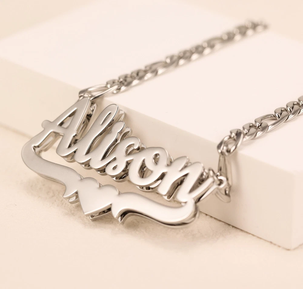 Personalized Double Layered Name Frosted Necklace Custom Stainless Steel Jewelry